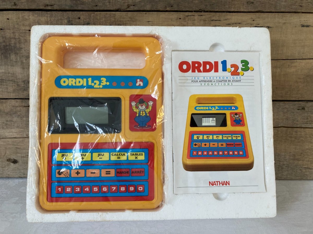 ⚜️ Educational Game Ordi 123 Nathan Electronics 5 Functions to Learn Counting While Playing ⚜️ Works from 5 Years Old Year 1988 Batteries not included Condition: Used: Item that has been used. Check the seller's description for more details ... Used: Item that has been used. any possible imperfections. Brand: Nathan Game Name: Ordi 123 Country of Origin: France