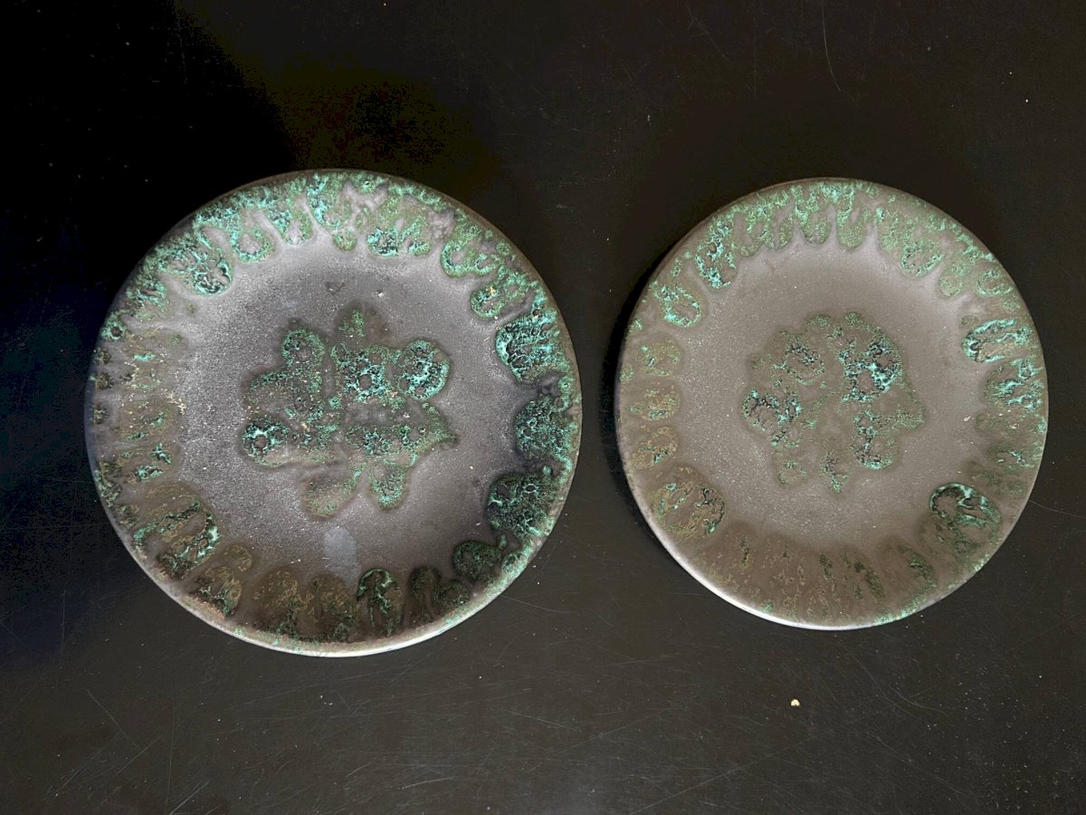 Set of 70s ceramic plates handcrafted by Petit Massé Morvan. L: 19 W: 19 H: 2