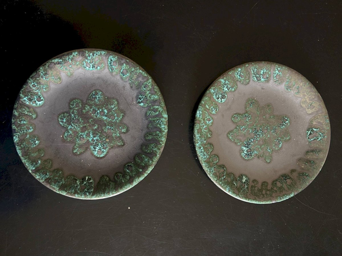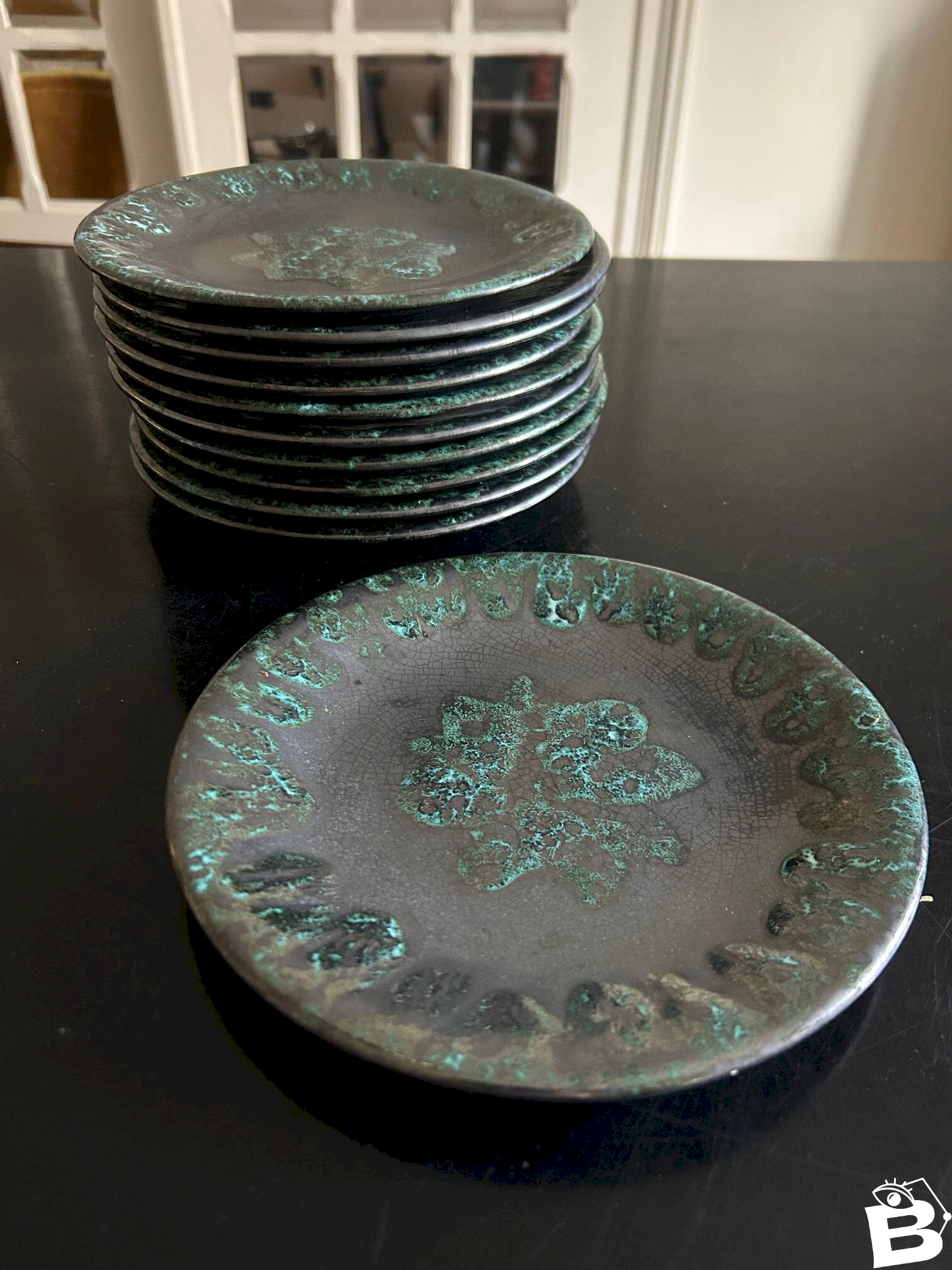 11 flat ceramic plates Lava Petit Massé Morvan Green