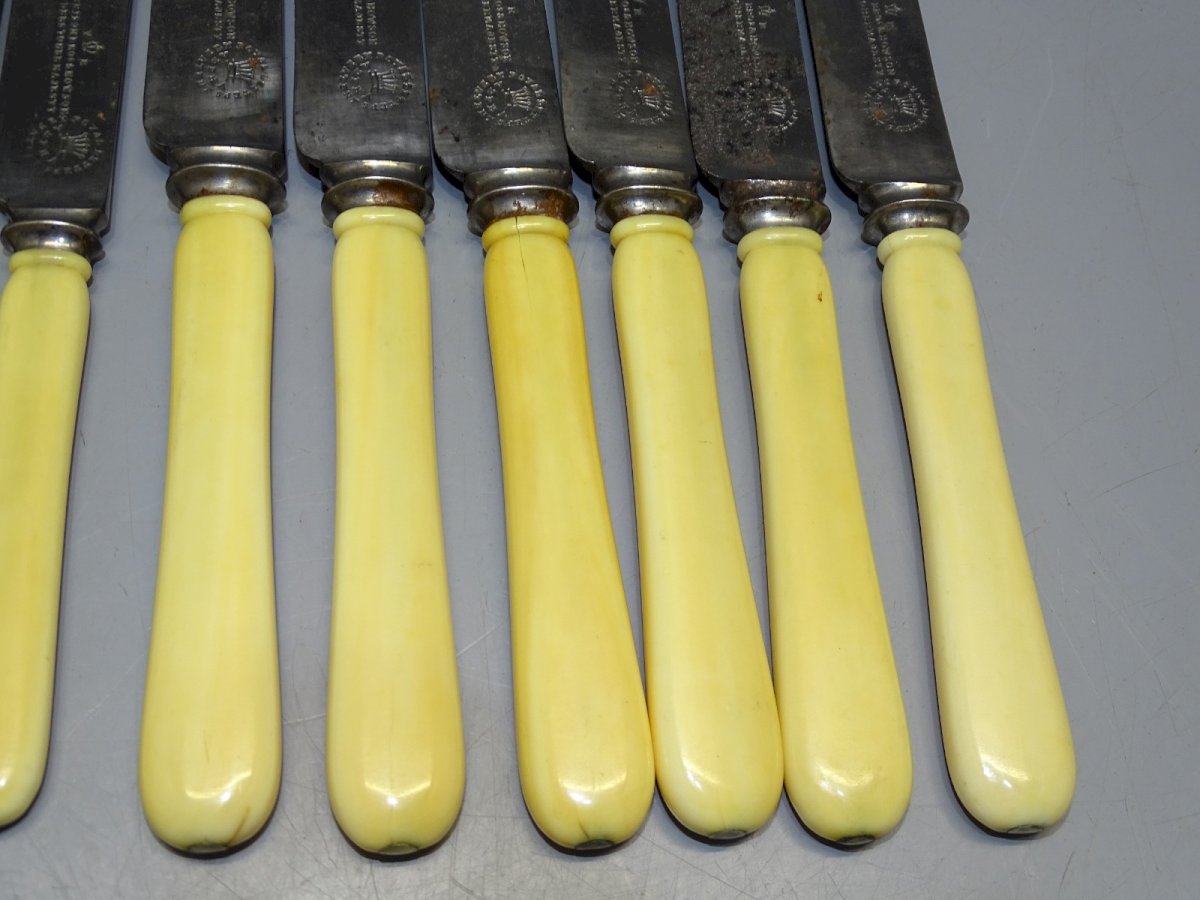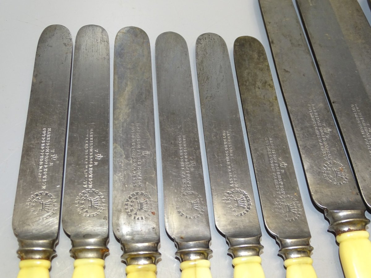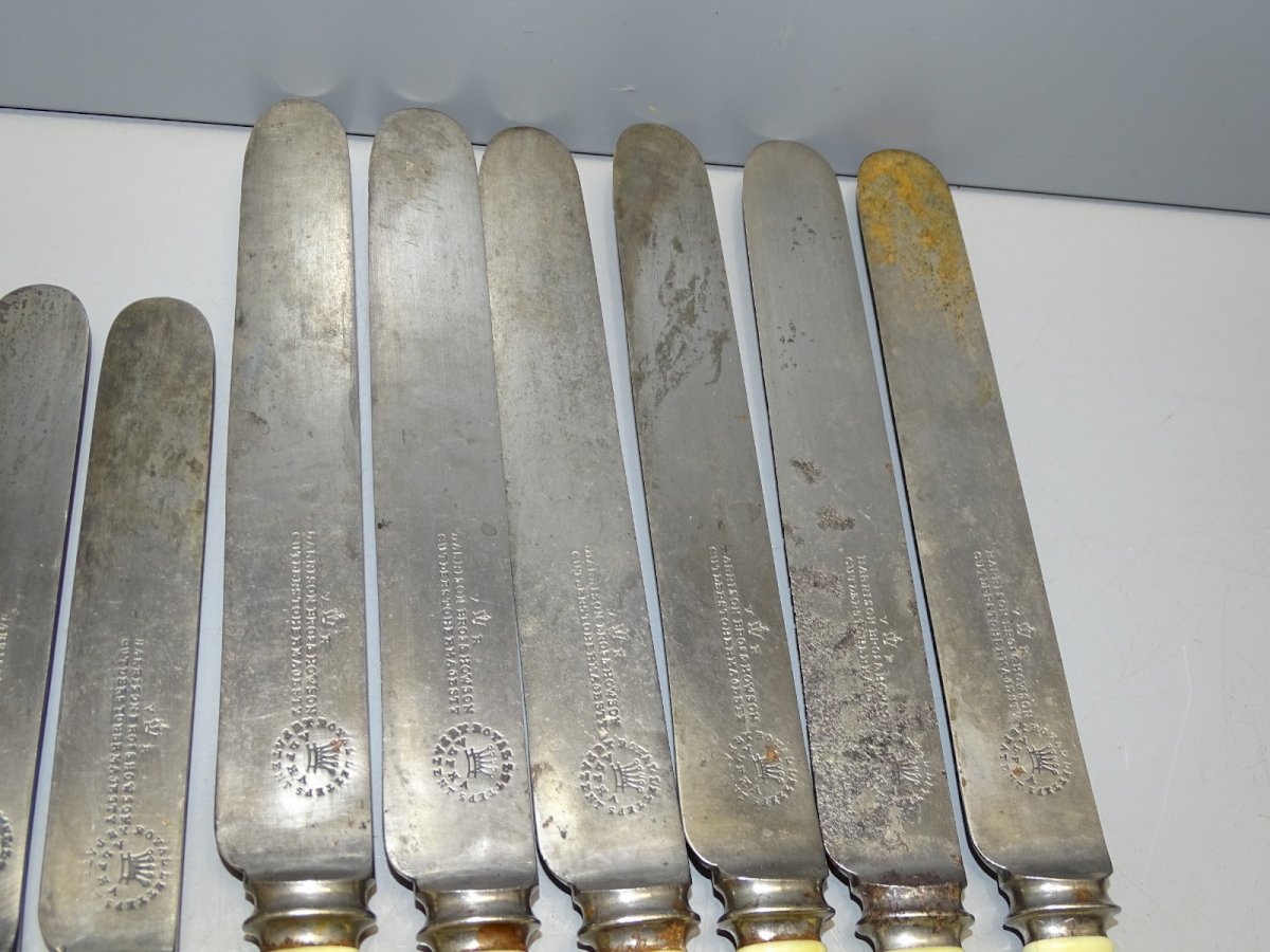 12 Table knives with engraved blades Harrison Bros & Mowson - cutlers to her Majesty - cream bakelite handles with some small defects - blades with rust (see photos) - finds from an attic, to be cleaned - in usable condition - Ref. 42141025/89 - 6 Large Length 26.8 cm 6 Small Length 21.7 cm - Weight 0.691 kg - To contact me my email address: SHIPPING POSSIBLE BY MONDIAL RELAY or COLISSIMO upon request VERY GOOD PACKAGING GUARANTEED THANK YOU for CAREFULLY LOOKING AT ALL the PHOTOS as THEY ARE AN INTEGRAL PART of the DESCRIPTION and ALLOW to SEE the ITEM BEST - Condition:Used: Item that has been used. Item showing some signs of superficial wear,...Used: Item that has been used. Item showing some signs of superficial wear, fully operational and functioning correctly. It may be a demonstration model or an item returned to the store after a short period of use. any possible imperfections. Color:cream color Brand:HARRISON BROS & MOWSON Type:KNIVES Material:BAKELITE HANDLES