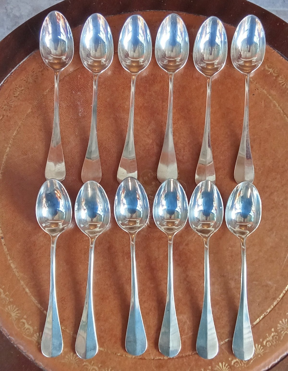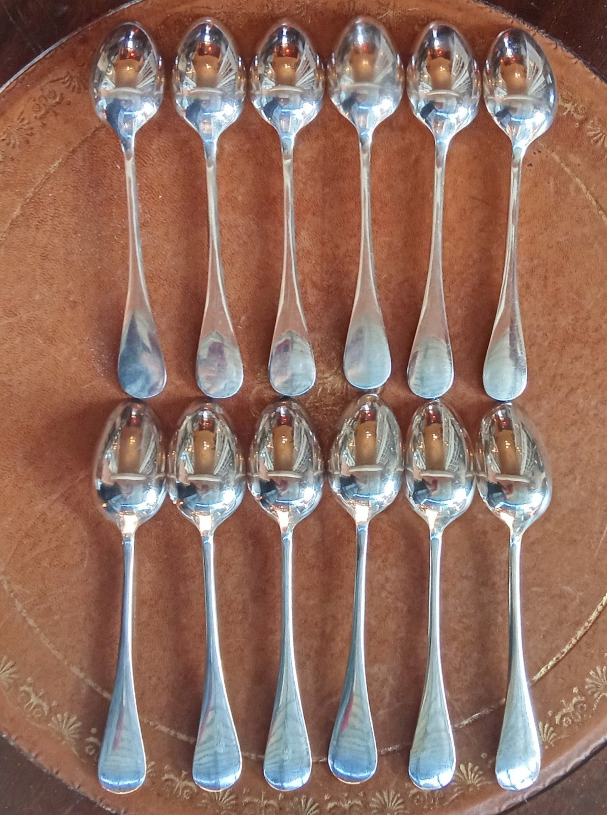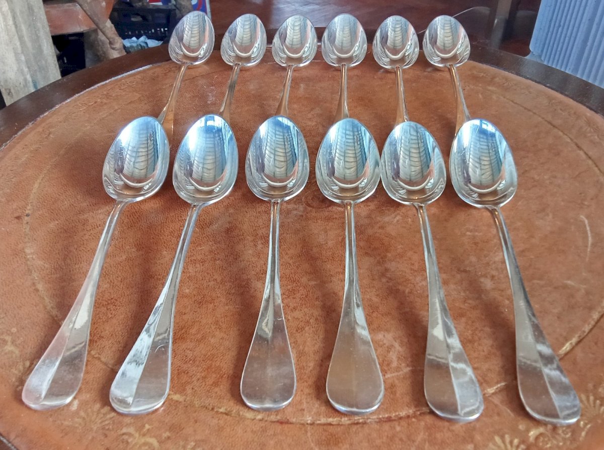 Set of 12 dessert spoons Antique Cutlery Ercuis Silver-Plated Beautiful condition Original case Tableware Length 18.5 cm Subtype: Spoon Material: Silver-plated metal