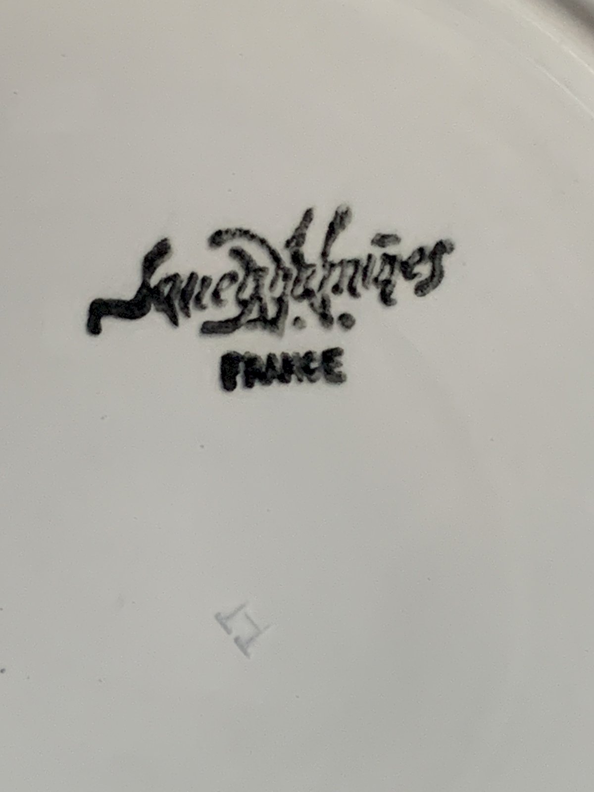 2 Digoin Sarreguemines deep plates, Flower Sowing and Sky Blue Checkered