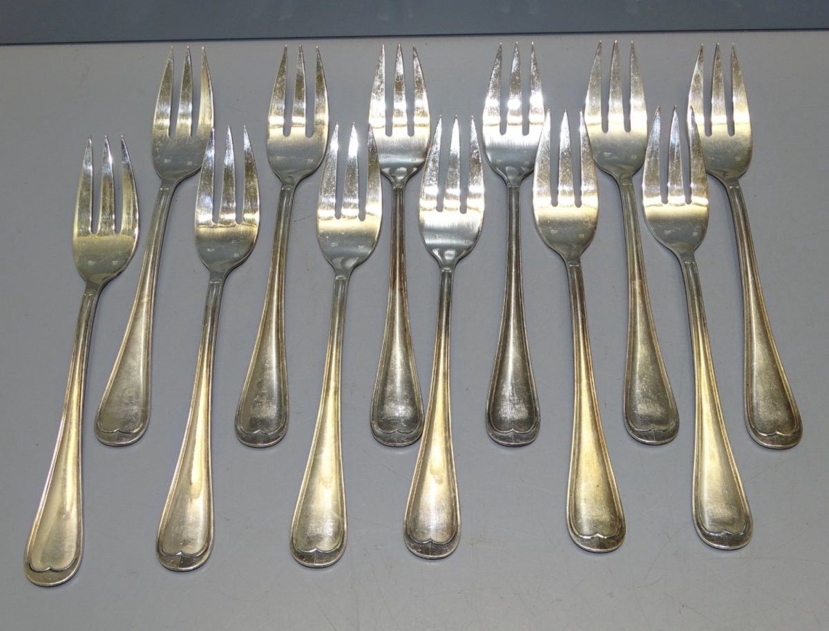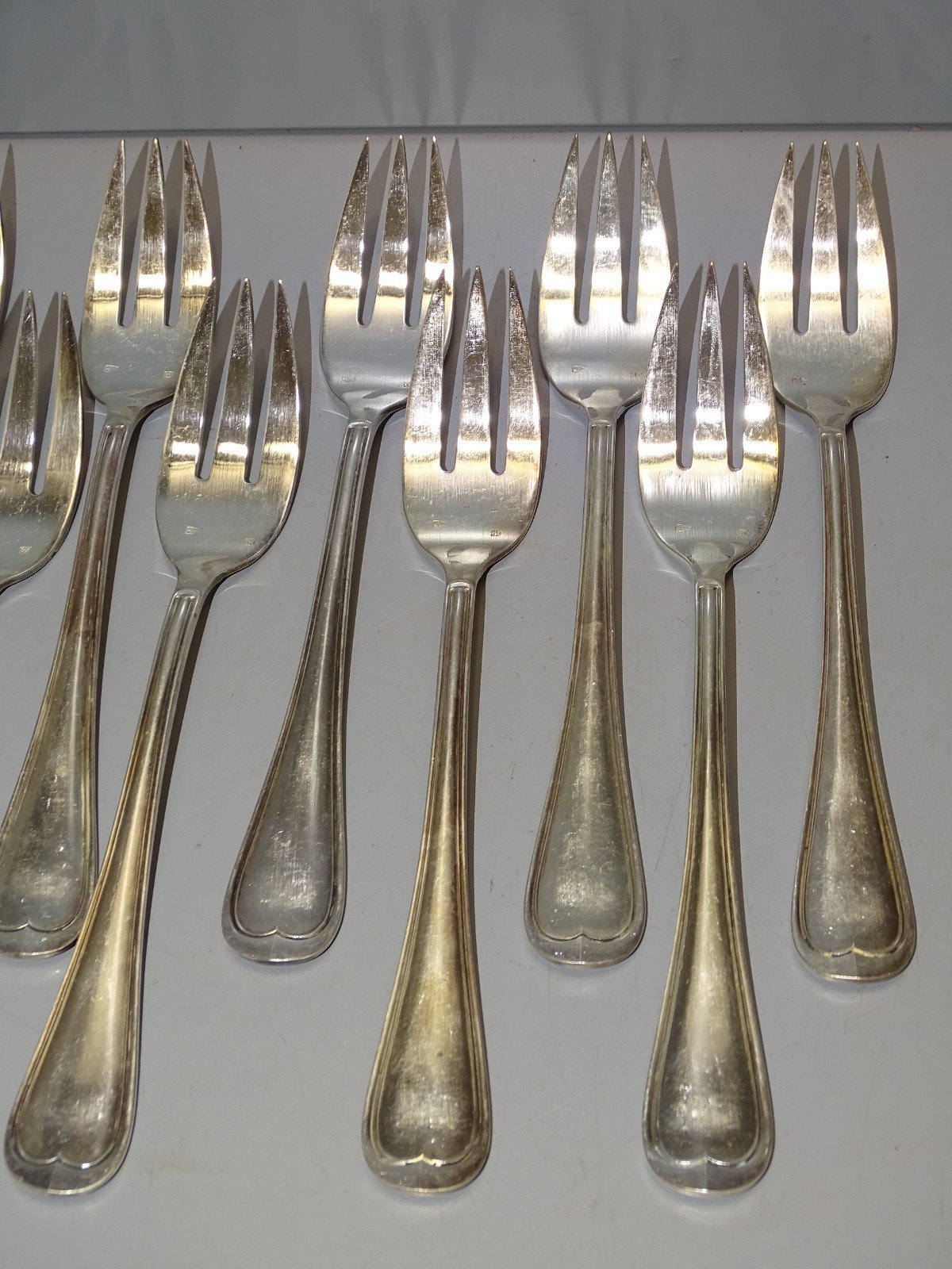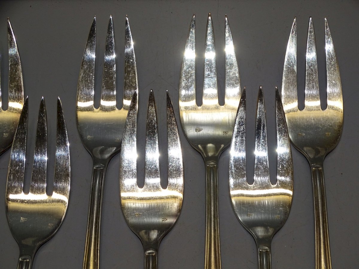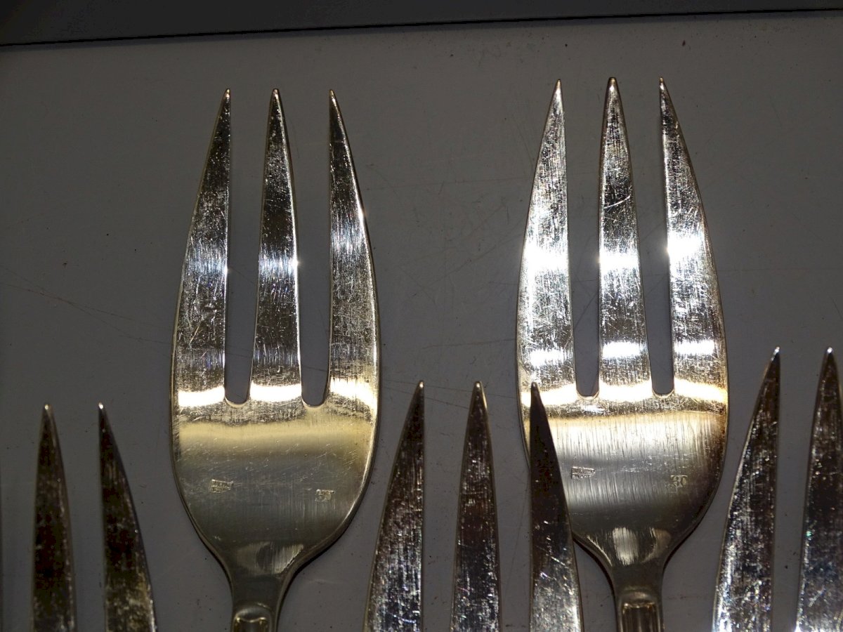 12 dessert or fish forks in white metal - presence of micro scratches from friction (see photos) - from finds, attic clearances - in good usable condition - Ref. 42141025/84 - Length 18.9 cm - Weight 0.593 kg - GUARANTEED very protective PACKAGING - PLEASE LOOK AT ALL the PHOTOS as THEY ARE AN INTEGRAL PART of the DESCRIPTION and ALLOW you to SEE the ITEM BEST - Sub-type: Fork