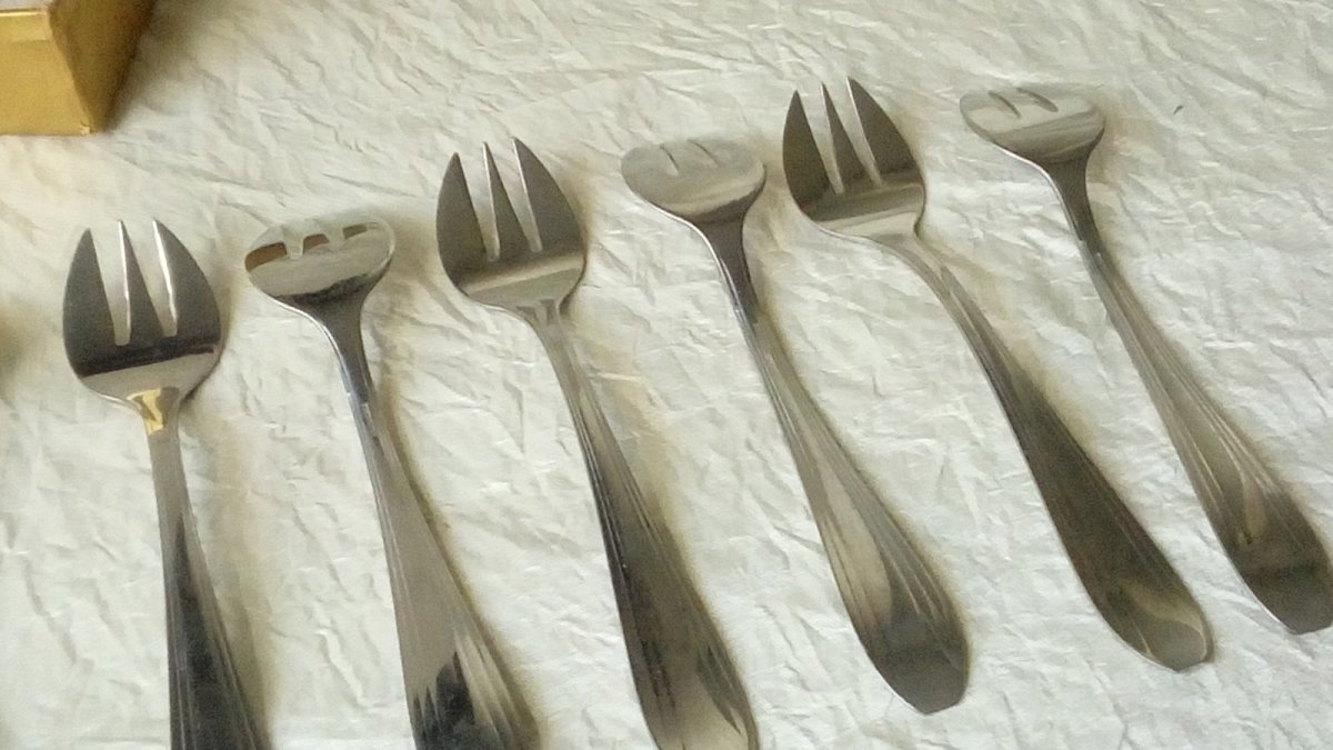 12 STAINLESS STEEL OYSTER FORKS APOLLONOX*