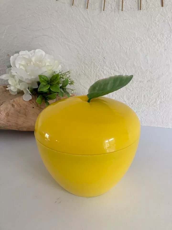 ♦ Vintage Yellow Apple Ice Bucket Ice Cube Tray from the 70s ♦ Made in France Height: 13 cm Color: Yellow Type: Ice Bucket Period: 1970s Material: Plastic Country of origin: France