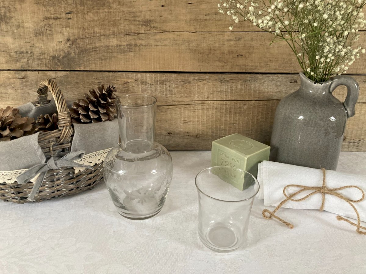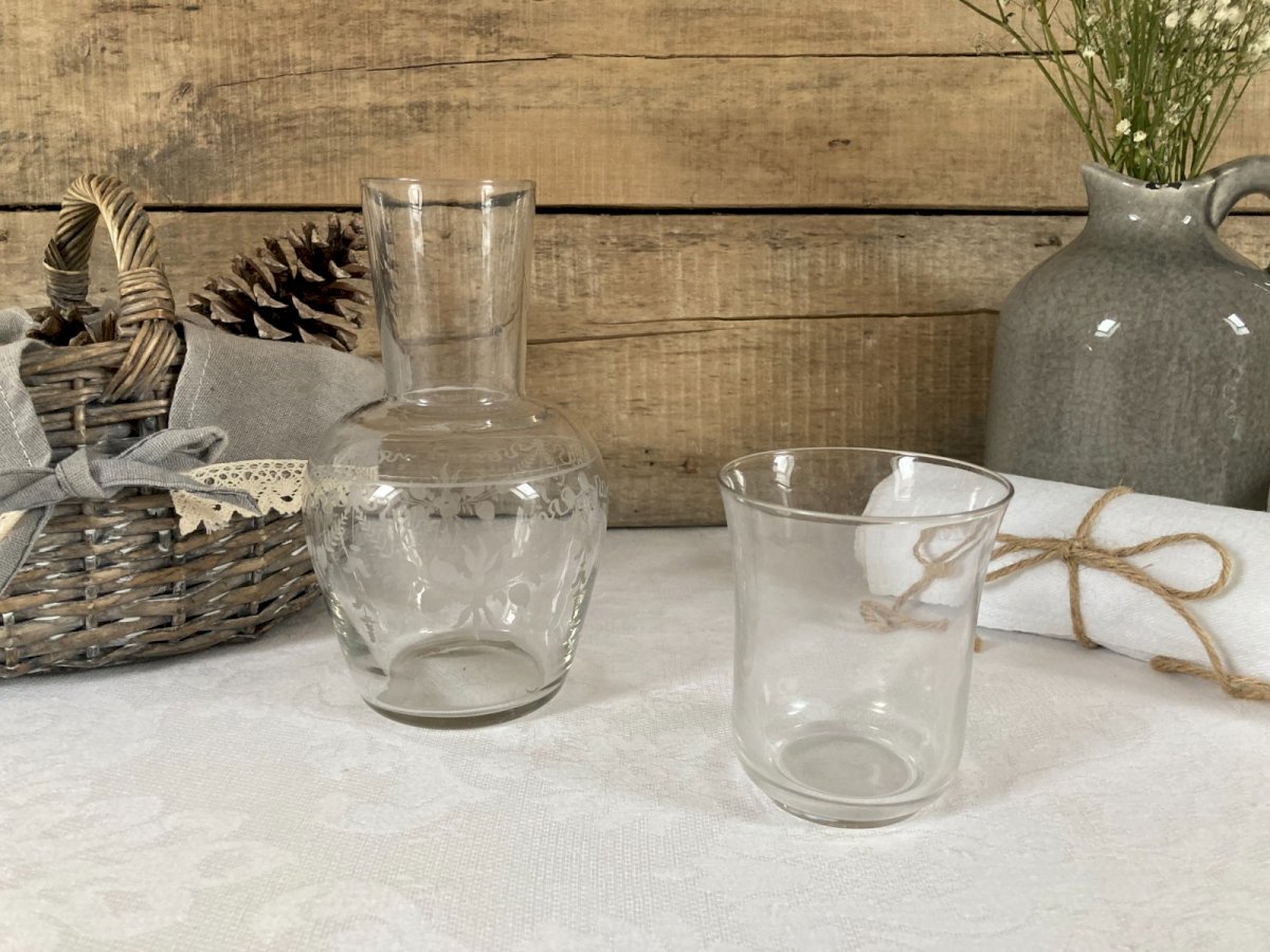 126⚜️ Decorative Set Glass Carafe With Water Glass Height 18 Cm