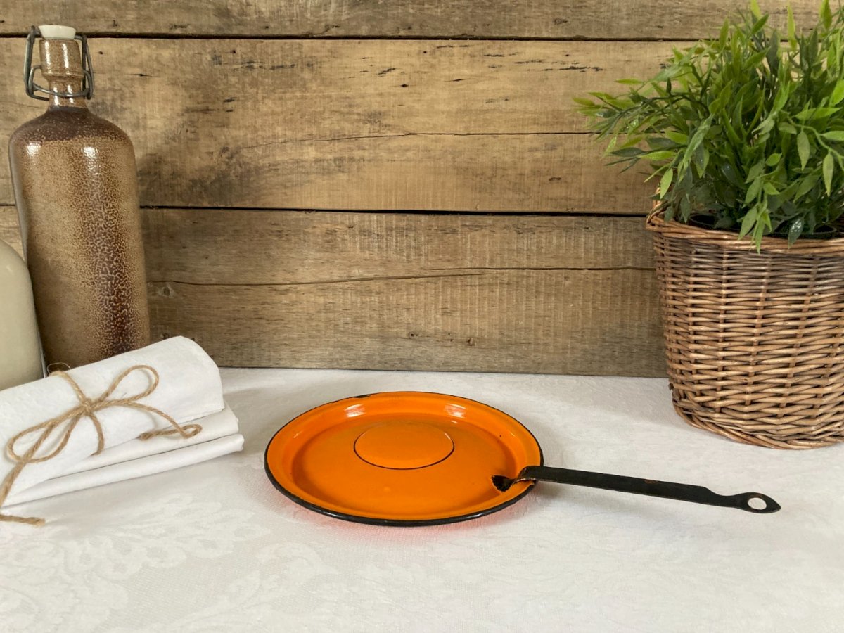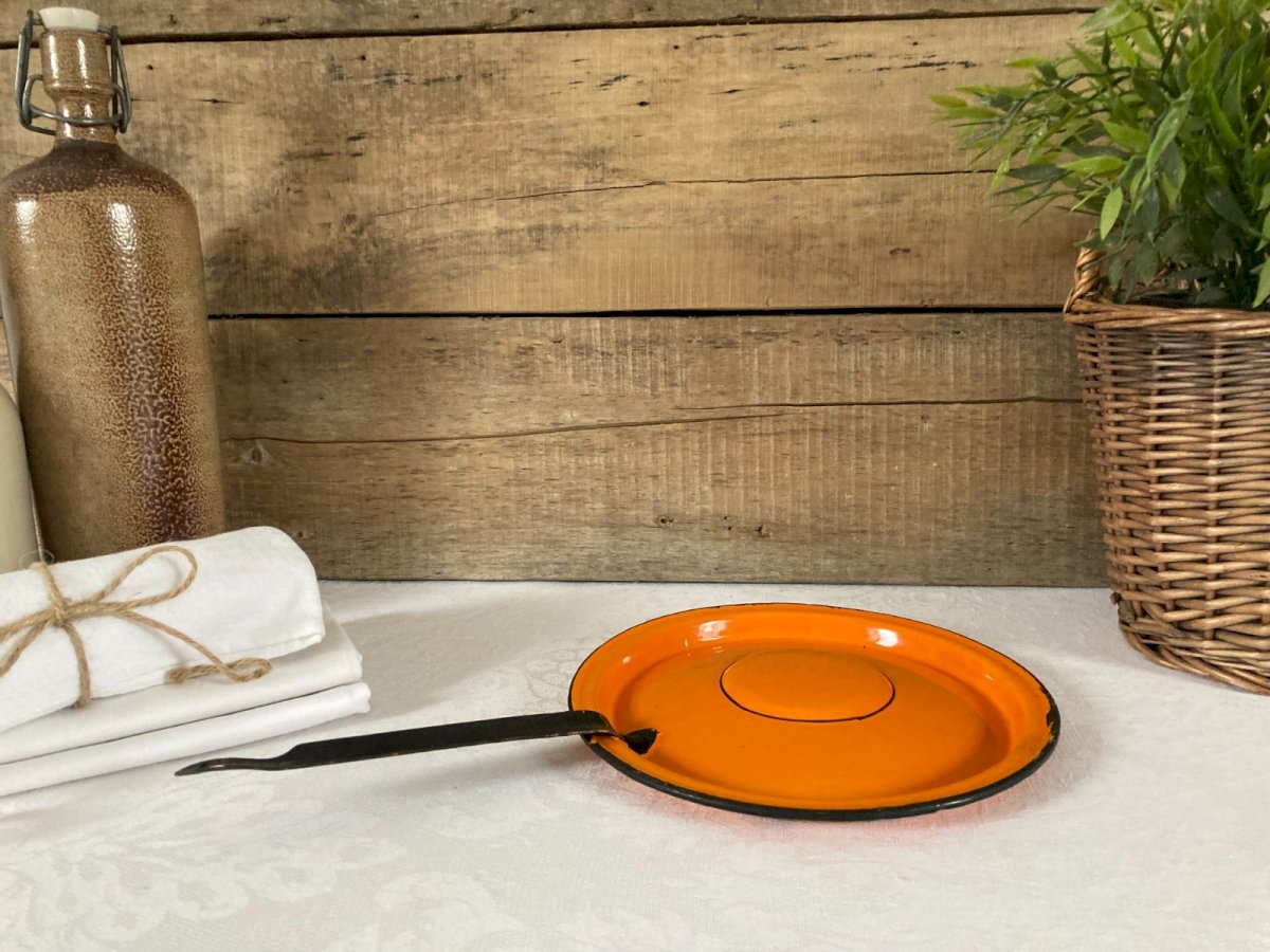 ⚜️ Vintage Orange Enamelled Metal Lid ⚜️ Diameter 20 cm Condition: Used: Item that has been used. Item shows some superficial signs of wear... Used: Item that has been used. Item shows some superficial signs of wear, fully operational and functioning properly. It may be a demonstration model or an item returned to the store after a short period of use. the possible imperfections. Color: Orange Country of origin: France