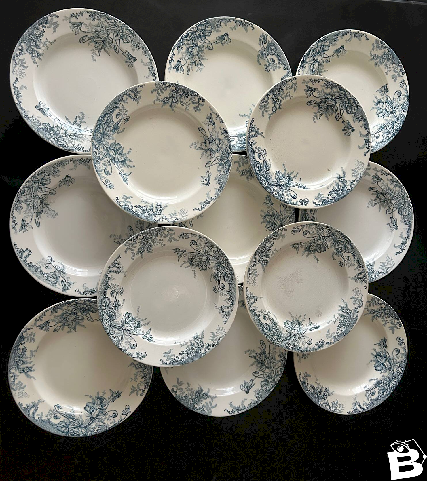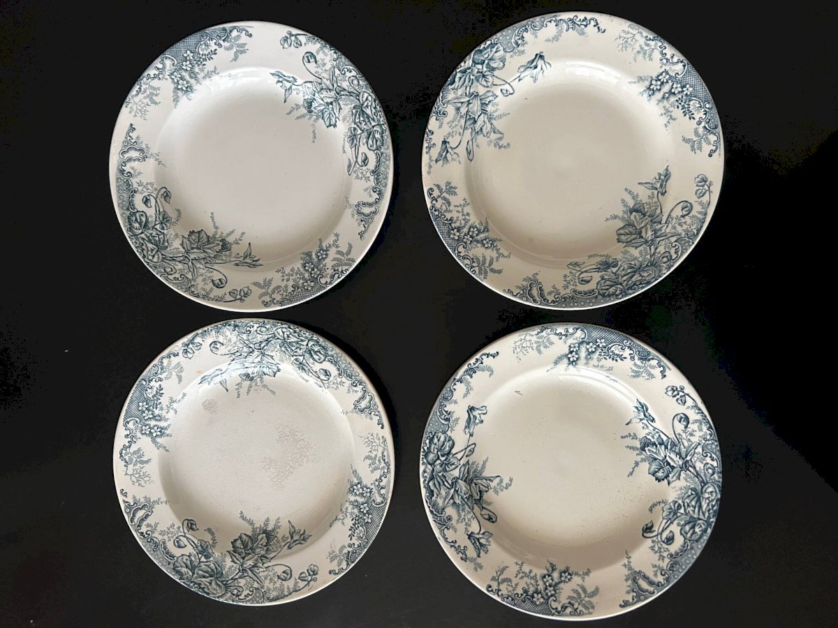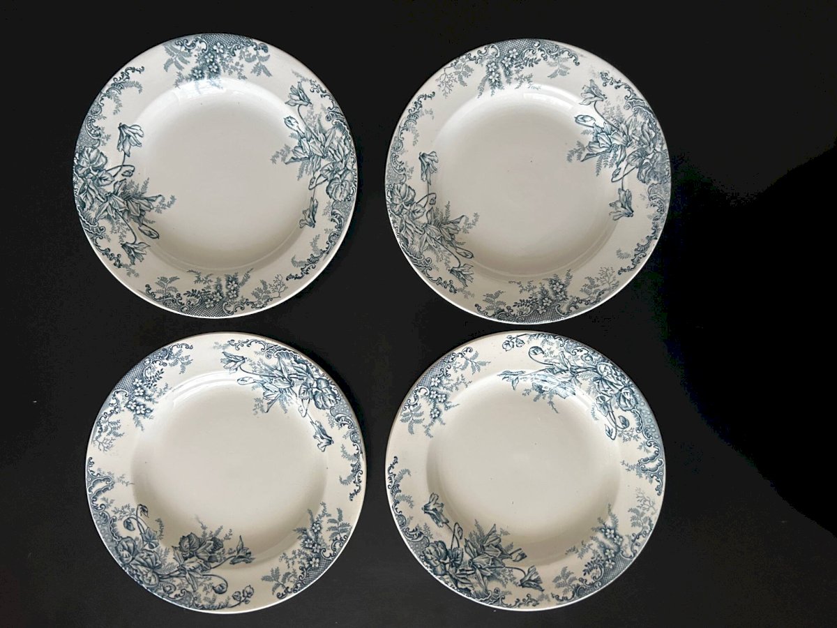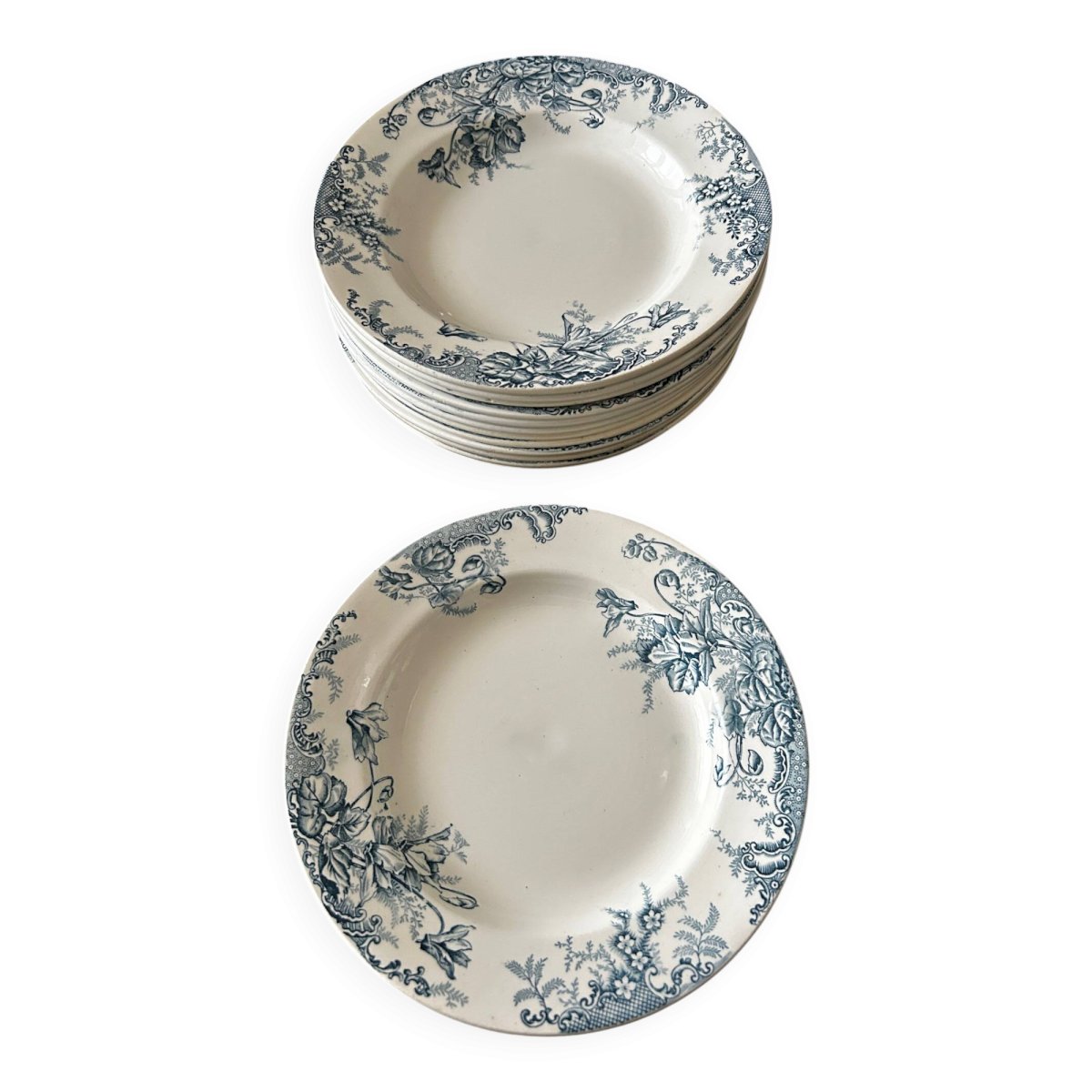 Antique hollow plate in Onnaing ironstone – Blue floral decoration