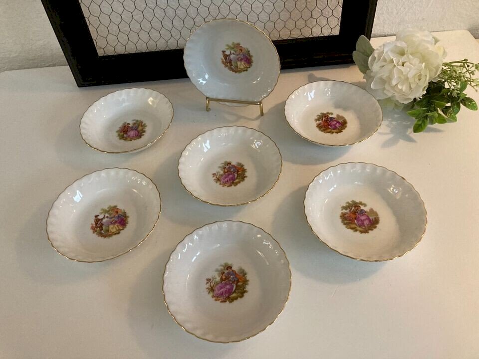 ⚜️ Vintage Set of 7 Ramekins Rheinpfalz Hartporzellan Germany ⚜️ Diameter 13 cm, Height 3 cm Very good condition in Porcelain Brand: Rheinpfalz Hartporzellan Country of origin: Germany