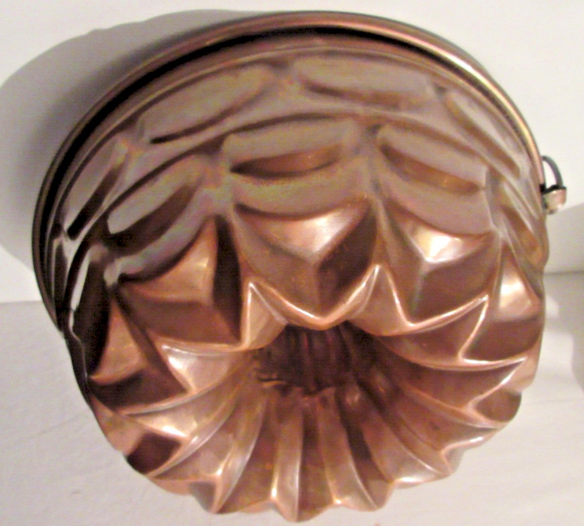 Worldwide sale. Cake mold. Vintage copper cake mold. Kuglof mold decorated with large scales and a 12-pointed star. A ring allows hanging it on the wall if desired. The inside is tinned, very clean. Height: 9 cm. Diameter: 22.5 cm. Good condition, no defects, beautiful shine. For collection or gifting. For information: 05-49-56-63-75. Condition: Used item. Possible imperfections. Color: copper. Number of pieces: 1. Type: cake mold. Period: Art Nouveau, 1900. Country of manufacture: France. Sub-type: collectible mold. Material: Copper. Style: Handmade.