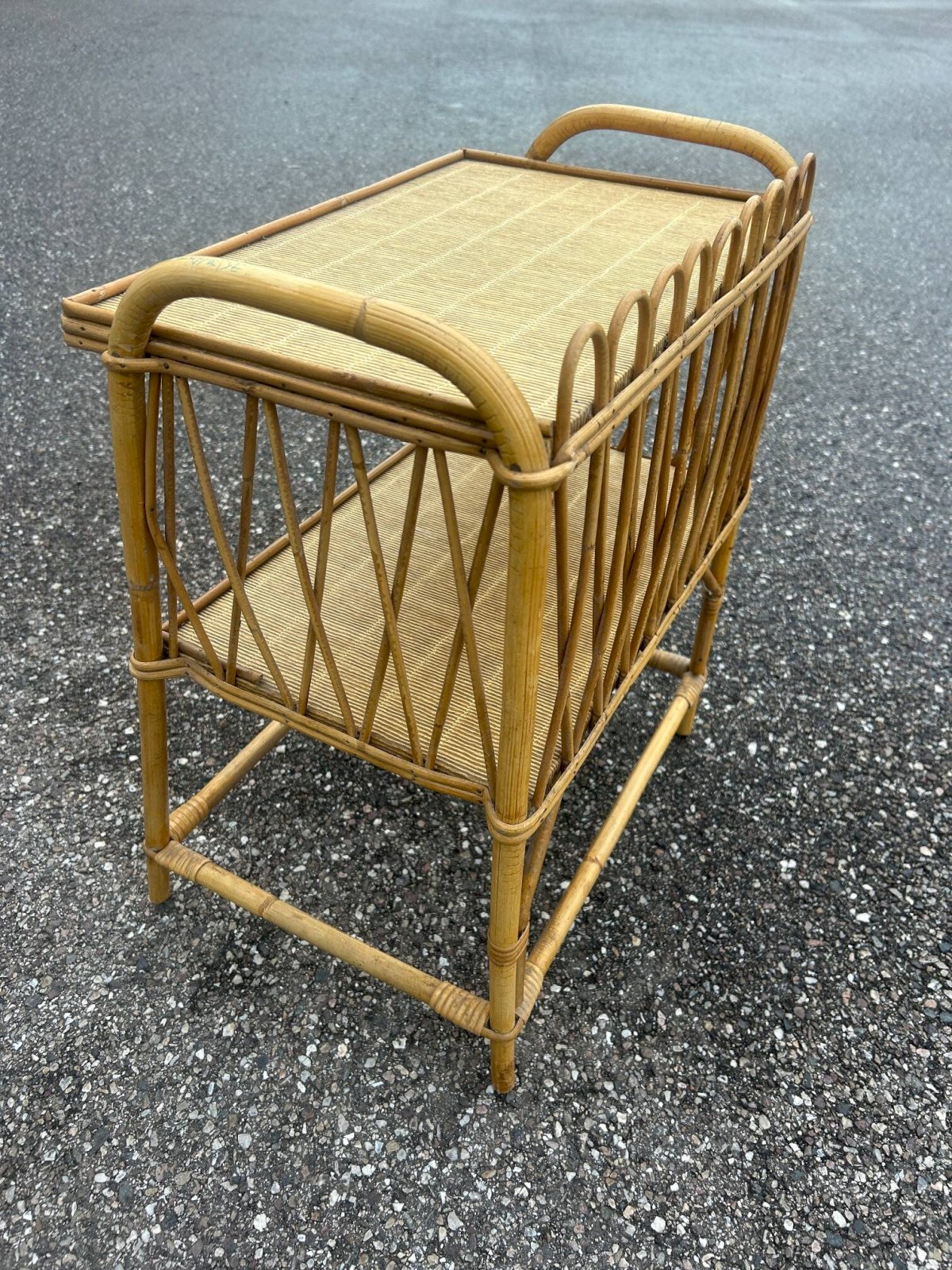 vintage rattan side table.