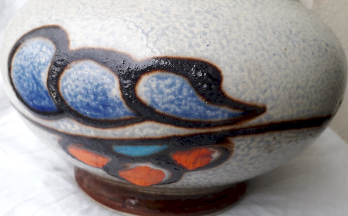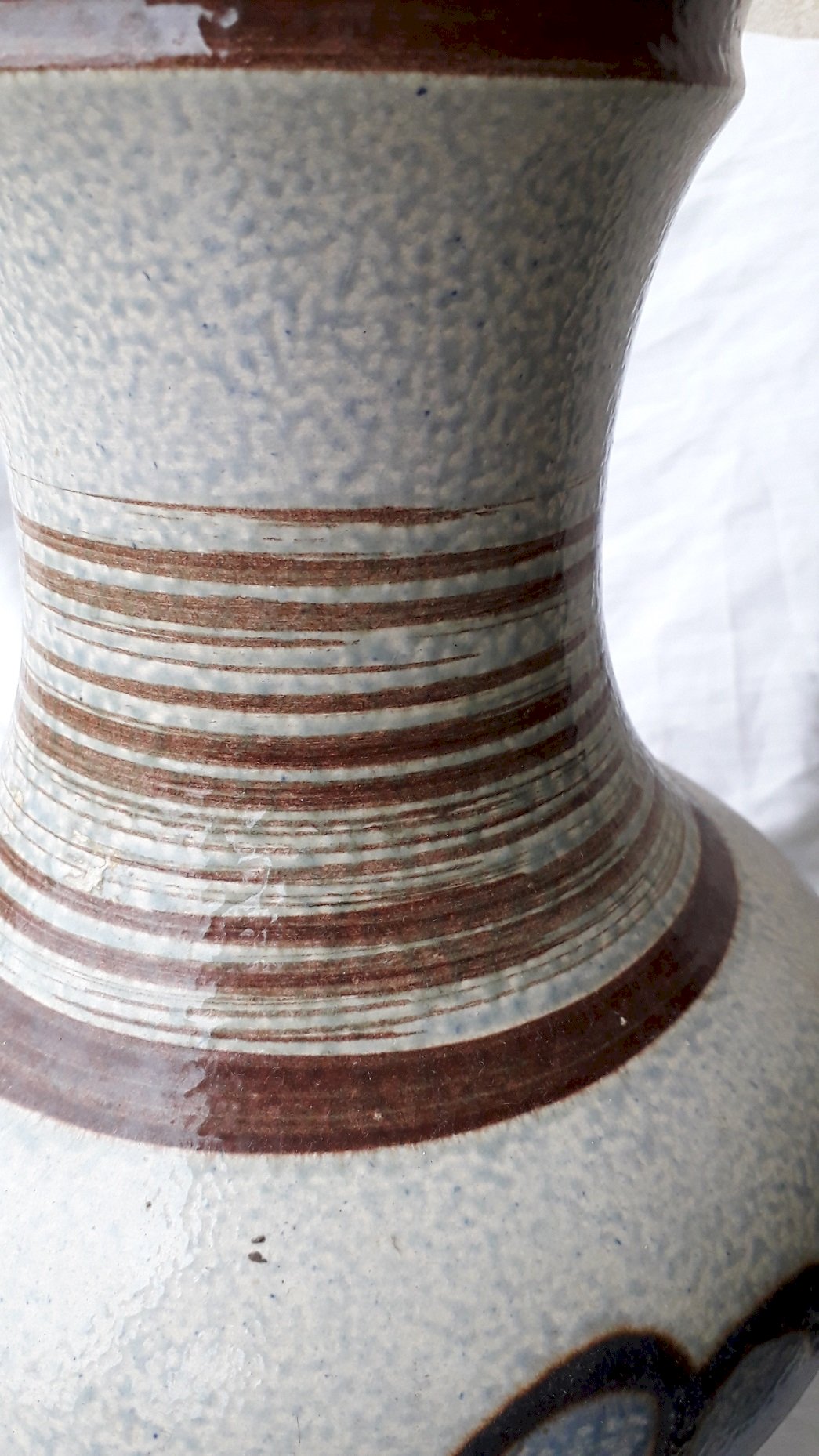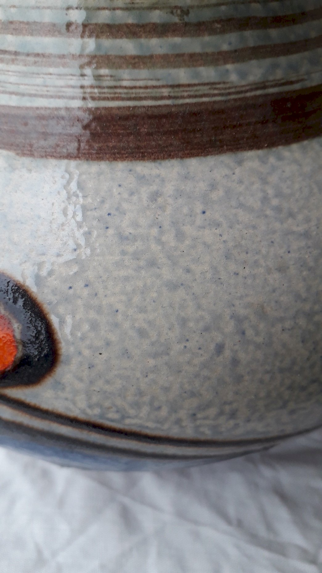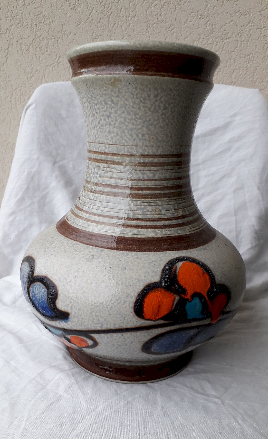 Ceramic or stoneware vase with a flamed finish from the 70s, marked with a number underneath.