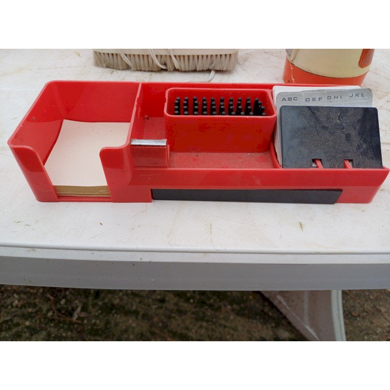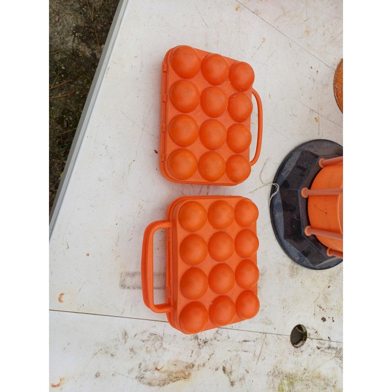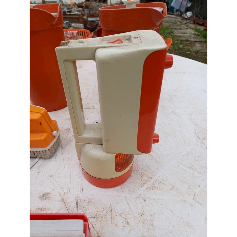 Vintage Lot from the 70s Orange Plastic, Umbrella Stand, Mirror, Coffee Maker, Desk Set, Handheld Vacuum, Flashlight, 2 Jugs, 2 Bread Baskets, and 2 Egg Boxes, very good condition.