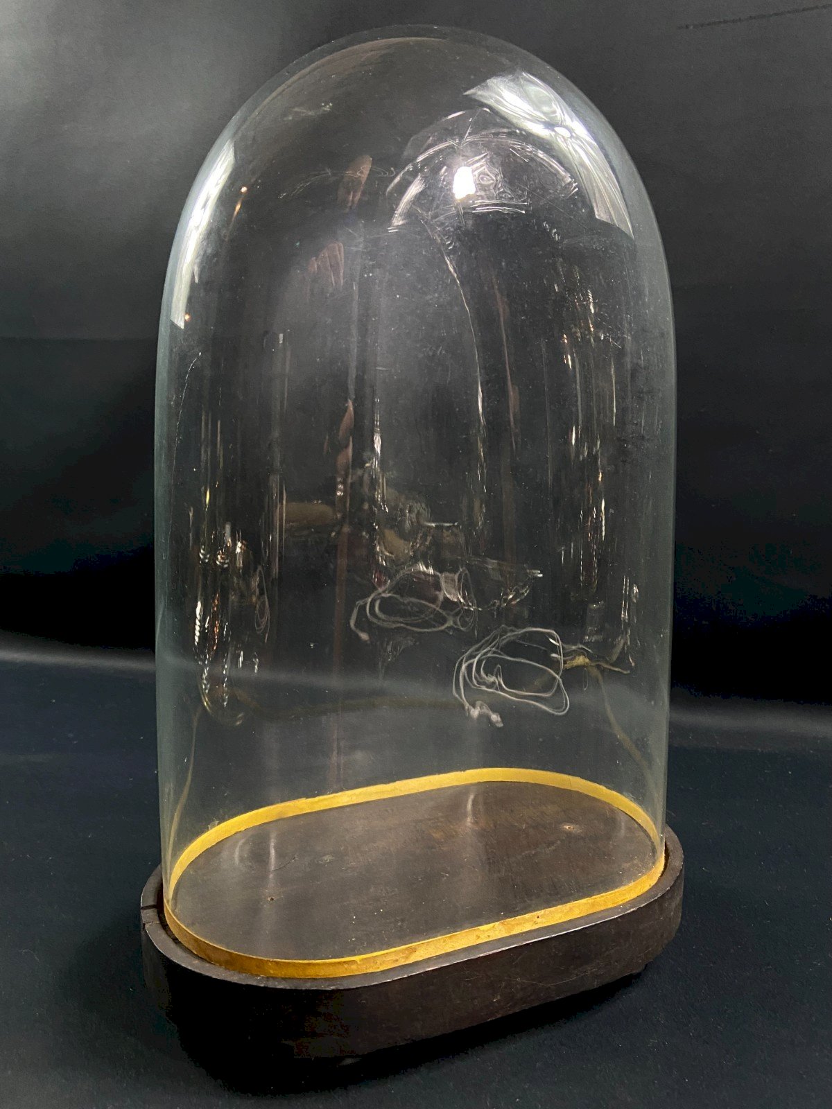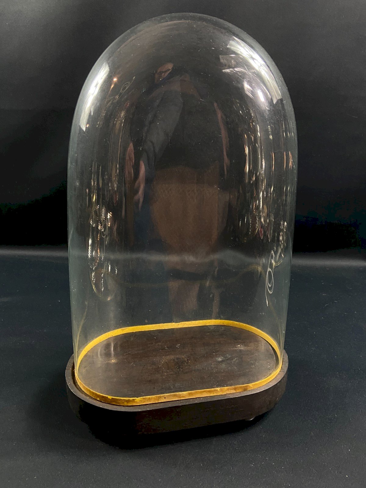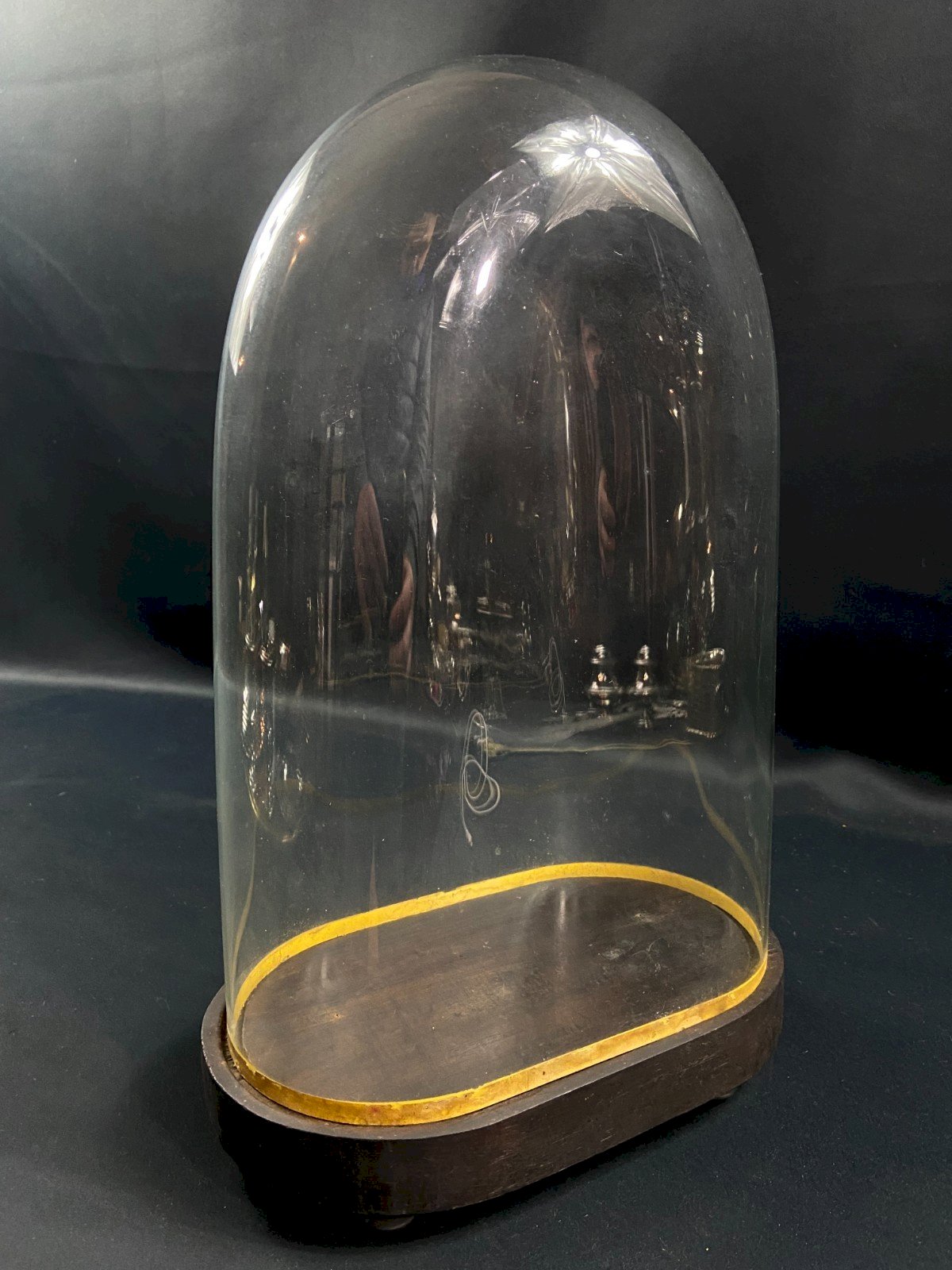 19th Century glass globe on a blackened wooden base, Napoleon III - Maximum dimensions with base: Height 43.3 x 27.7 x 17 cm - Outer dimensions without base: Height 38.9 x 26 x 15 cm - Available inner dimensions: Height 38.2 x 25.4 x 14.4 cm Weight: 1395 grams I would like to note the presence of small surface wear marks on the base. Ultra-secure shipping worldwide - Pickup of orders possible by appointment, 7 rue Notre-Dame 18000 Bourges. - Grouping within the same package is possible: please contact me beforehand so I can calculate your optimized shipping costs. Country of origin: France