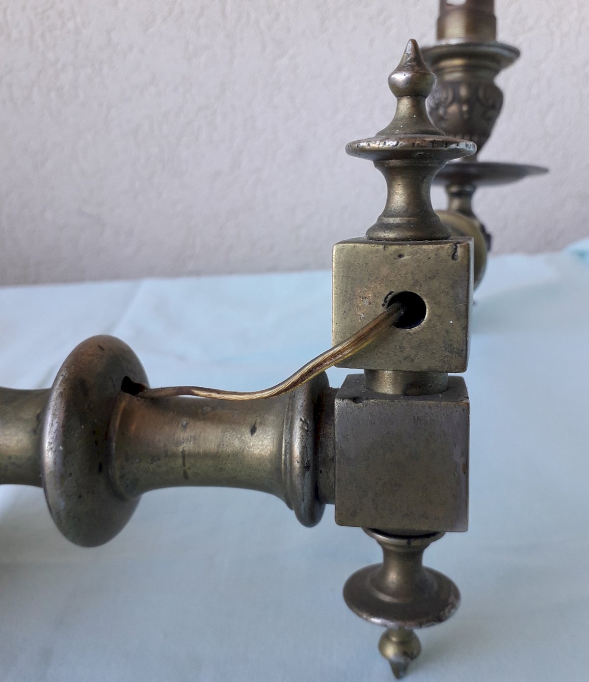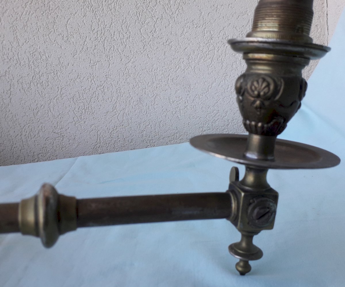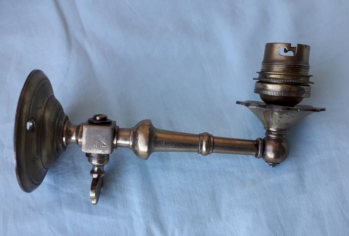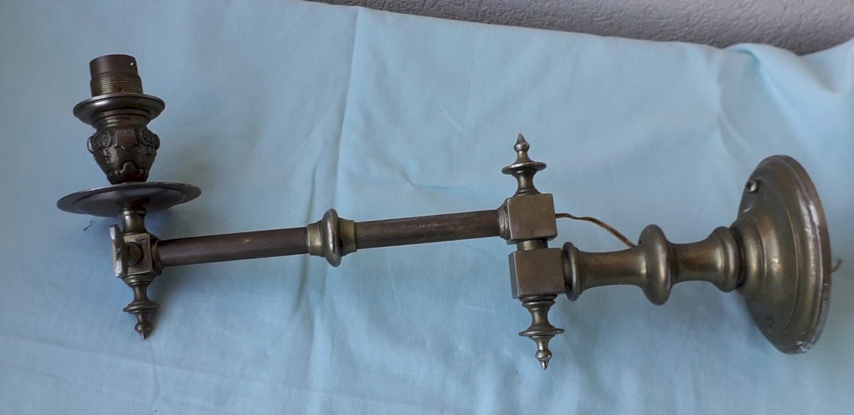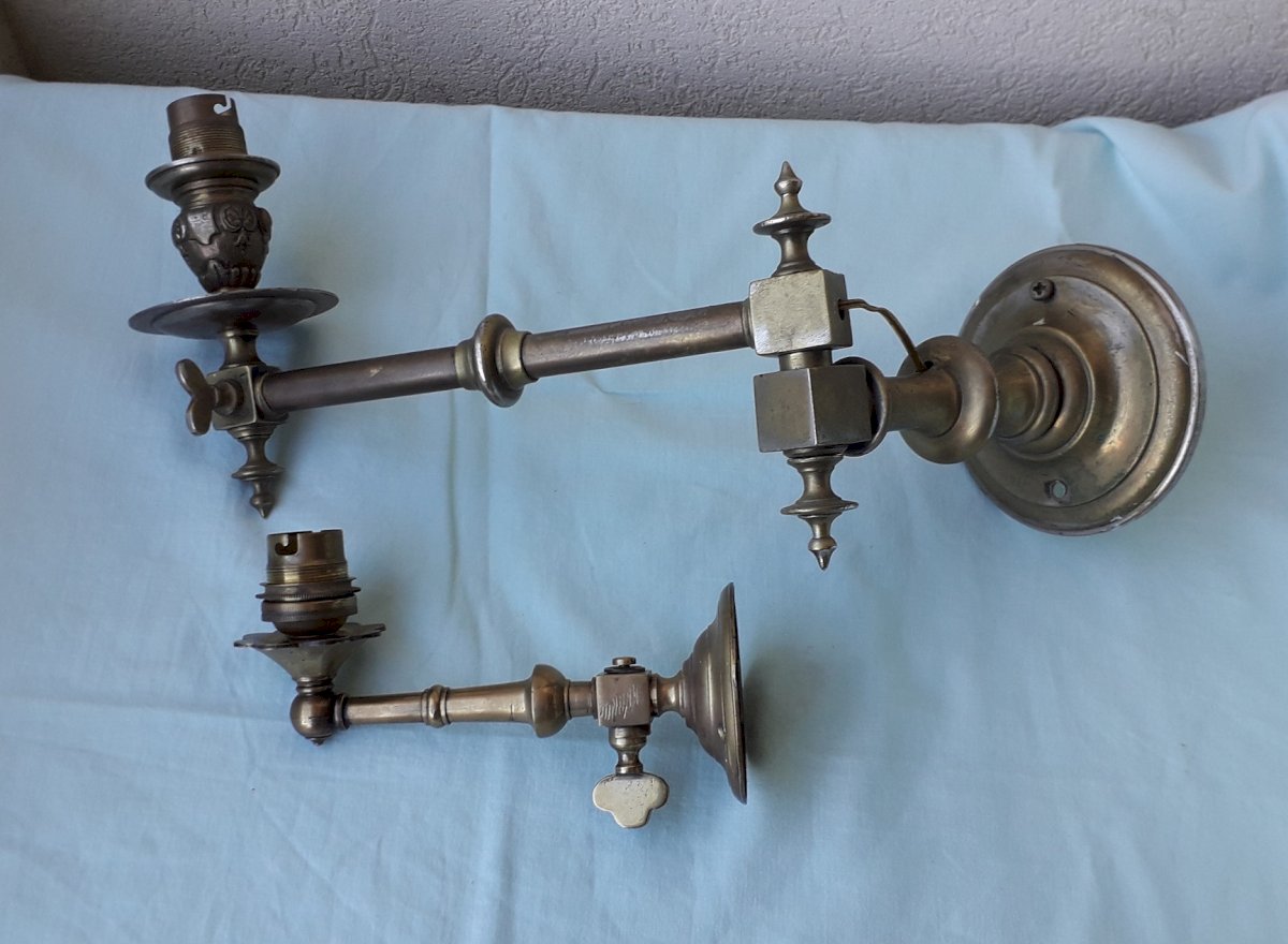 2 old electrified wall sconces, originally gas. One with an articulated arm, the other without. In their original condition, to be cleaned and electrified. Total weight 1.4 kg. Feel free to contact me for any additional information and/or to make your offers. See my other items for sale.