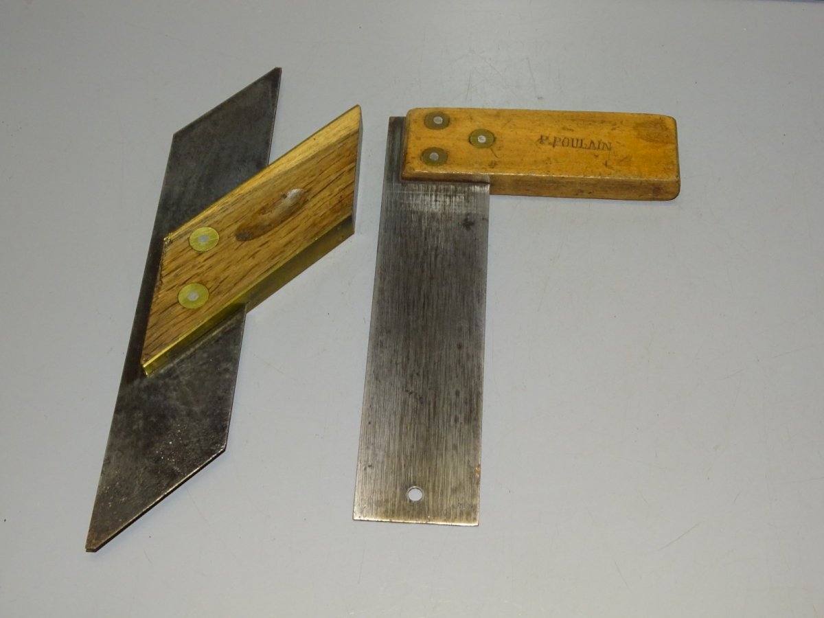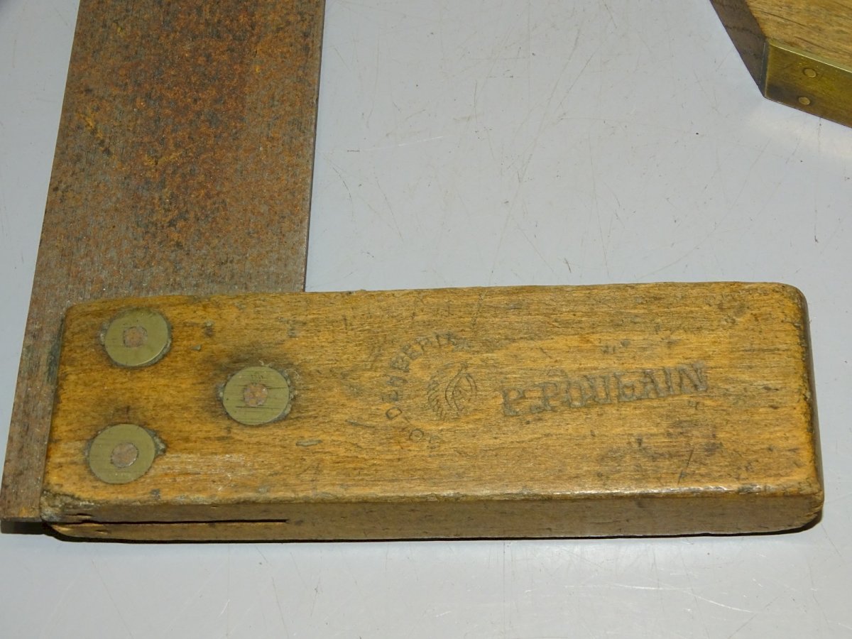 2 old squares, 1 marked Goldenberg and P Poulain - 1 with brass plate edges - superficial rust traces on blades (see photos) - found items, attic finds, in very good usable condition - Ref. 42240725/105 - 23.8 x 8.6 cm & 19.1 x 13 cm - Weight 0.281 kg - SHIPPING via Mondial Relay OR Colissimo possible upon request - PACKAGING GUARANTEED very protective - PLEASE VIEW ALL PHOTOS as THEY ARE AN INTEGRAL PART of the DESCRIPTION and ALLOW YOU TO SEE the ITEM BEST - Condition: Used: Item has been used. Item shows some minor superficial wear marks... Used: Item has been used. Item shows some minor superficial wear marks, fully operational and functioning correctly. It may be a demonstration model or a returned item after a short period of use. potential imperfections. Brand: goldenberg Type: Square.