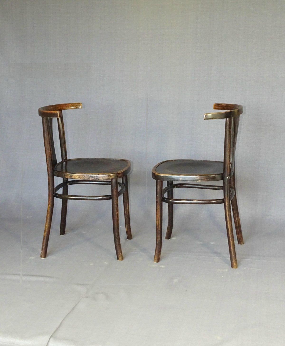 Pair of very "bistro" chairs from the 1930s/39s by the Polish company Czerski and Jakimowicz, well-known for its production of thermoformed plywood and a supplier to major bent wood manufacturers in Western Europe. The model offered here is featured in many catalogs, but it has the particularity of being equipped with a rectangular seat that gives it a certain class and, in any case, great comfort. Remarkable proportions. Very good original condition. Dimensions: Total height: 78 cm - seat height: 47.5 cm - width: 43 cm - seat: 41x39 cm. More photos and information available upon request. Shipping within France and Europe or pickup in Alsace. Condition: Used. Item has been used. Item shows some superficial wear marks, fully operational and functioning correctly. It may be a demonstration model or an item returned to the store after a short period of use. Any imperfections. Color: Brown Brand: Czerski Jakimowicz Type: Chair Height: 78 Length: 45 cm Width: 43.