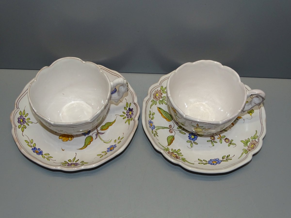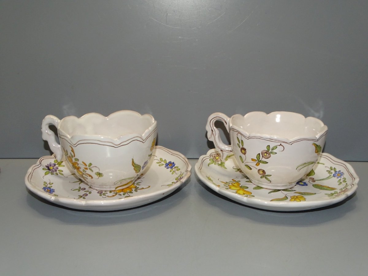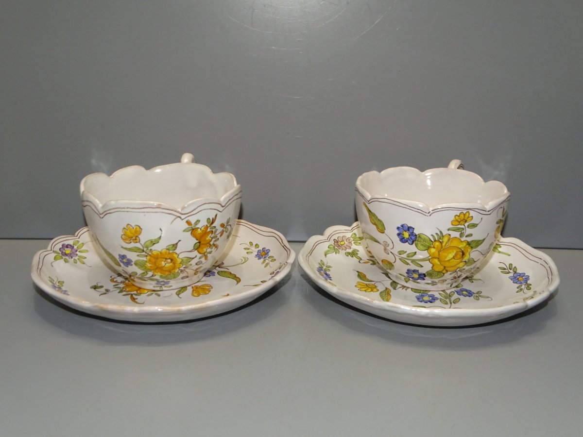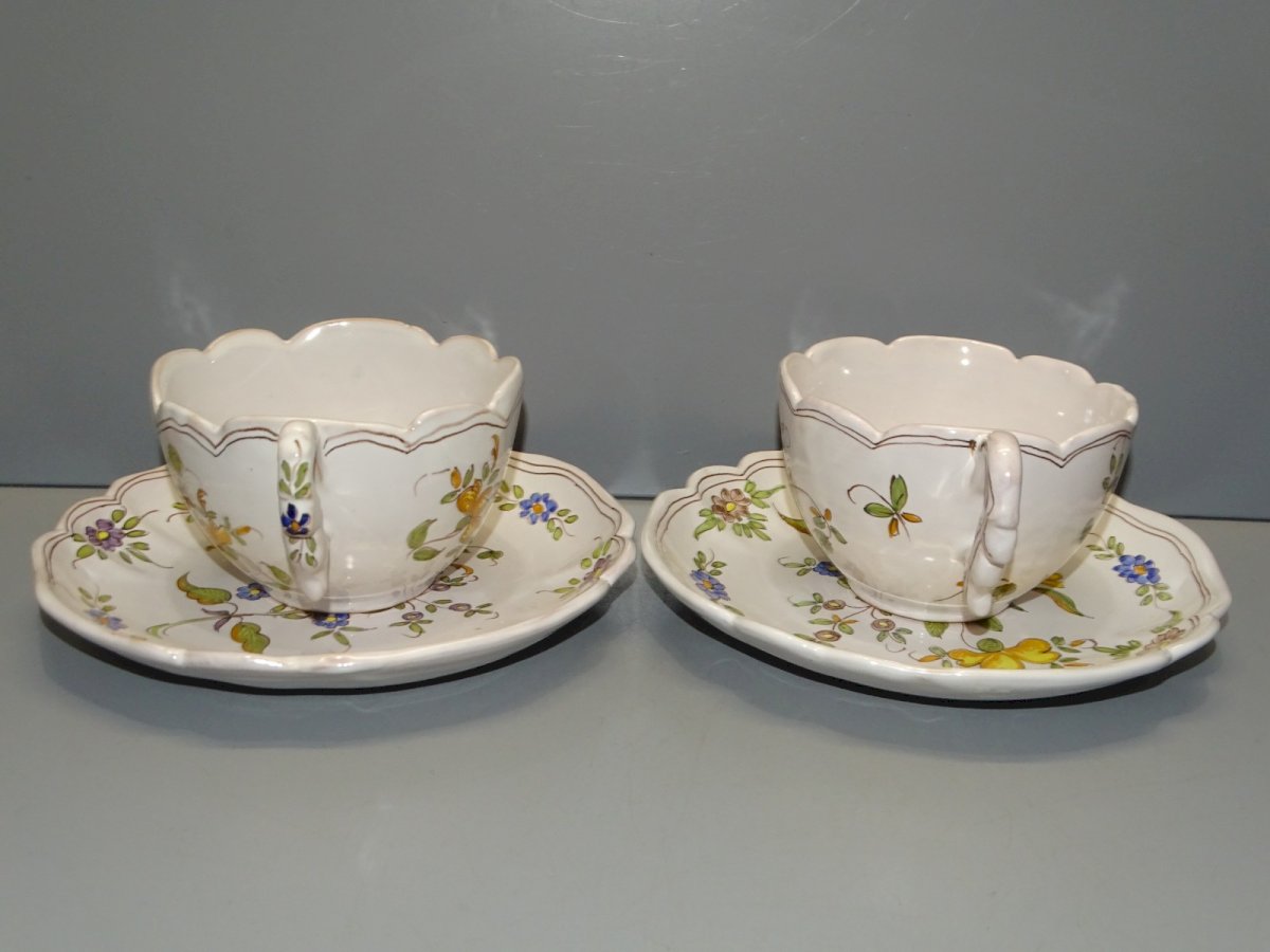 2 ceramic lunch cups and saucers signed MF 13 with floral decoration (see photos) - fresh finds, taken from the attic - in good used condition - Ref.42141025/54 - Saucer diameter 19.3 cm - Cup diameter 11.2 cm - Height 7.8 cm - Weight 1.2 kg - SHIPPING via Mondial Relay OR Colissimo possible upon request - GUARANTEED packaging very protective - PLEASE MAKE SURE TO LOOK AT ALL PHOTOS as THEY ARE AN INTEGRAL PART of the DESCRIPTION and ALLOW YOU TO SEE the ITEM IN THE BEST WAY.