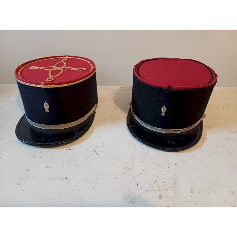 2 Gendarme Caps, Height: 11 cm, Length and Width: 24.5 cm by 18.5 cm, Total Weight: 300 g, Good condition in their original state