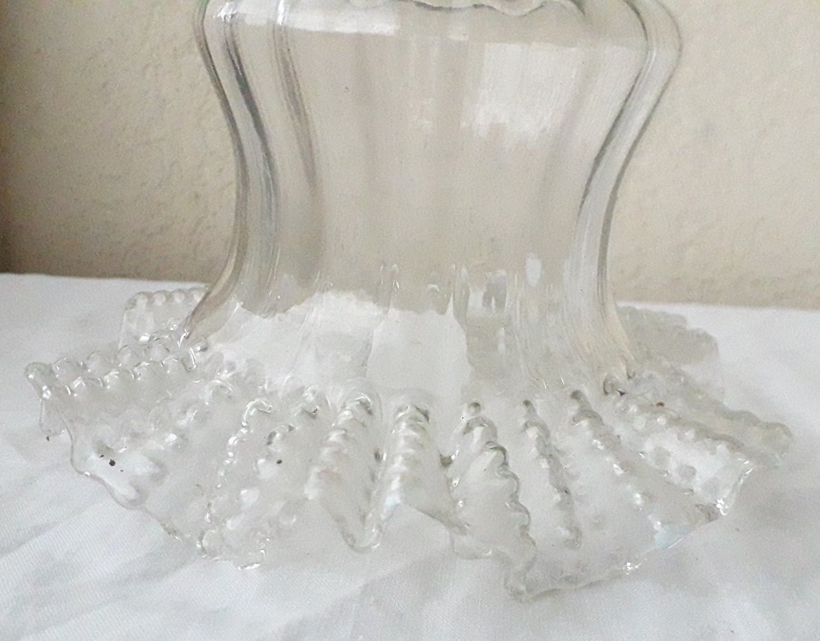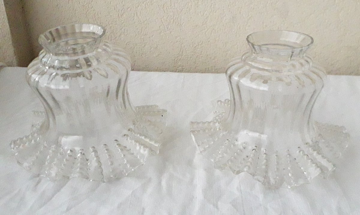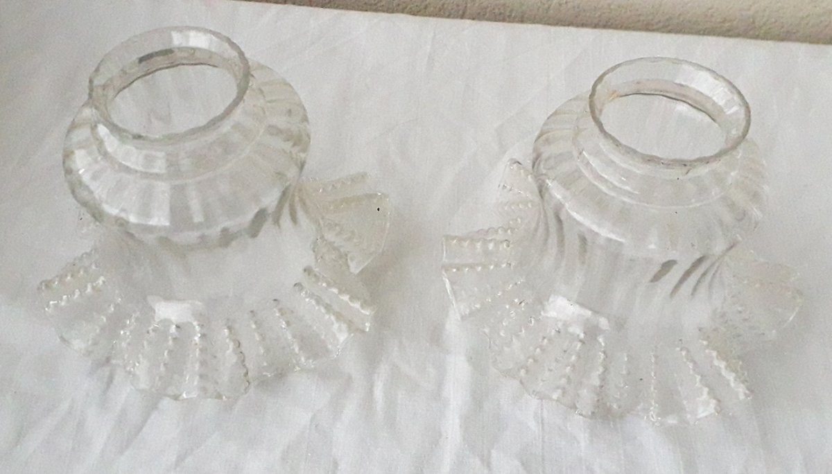 2 blown glass tulips with a wavy edge.