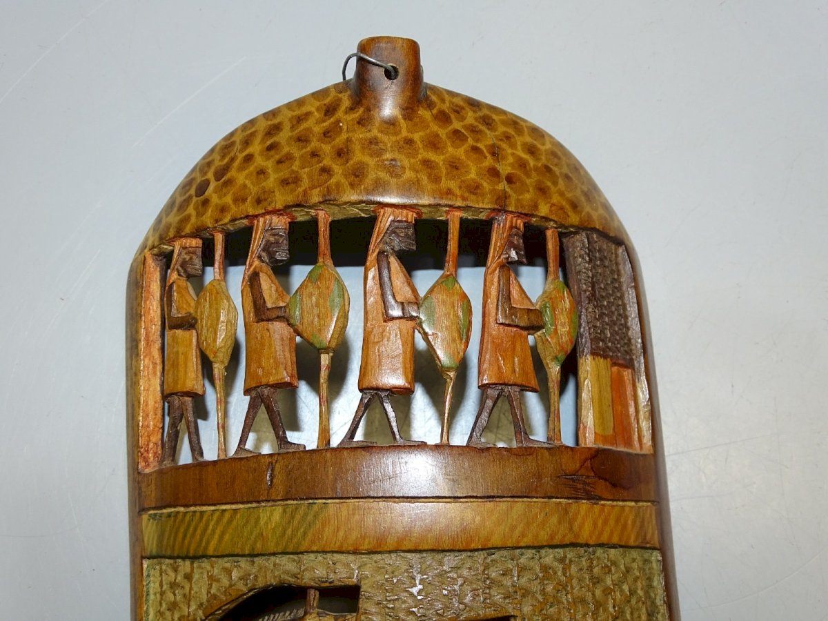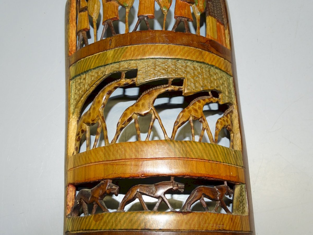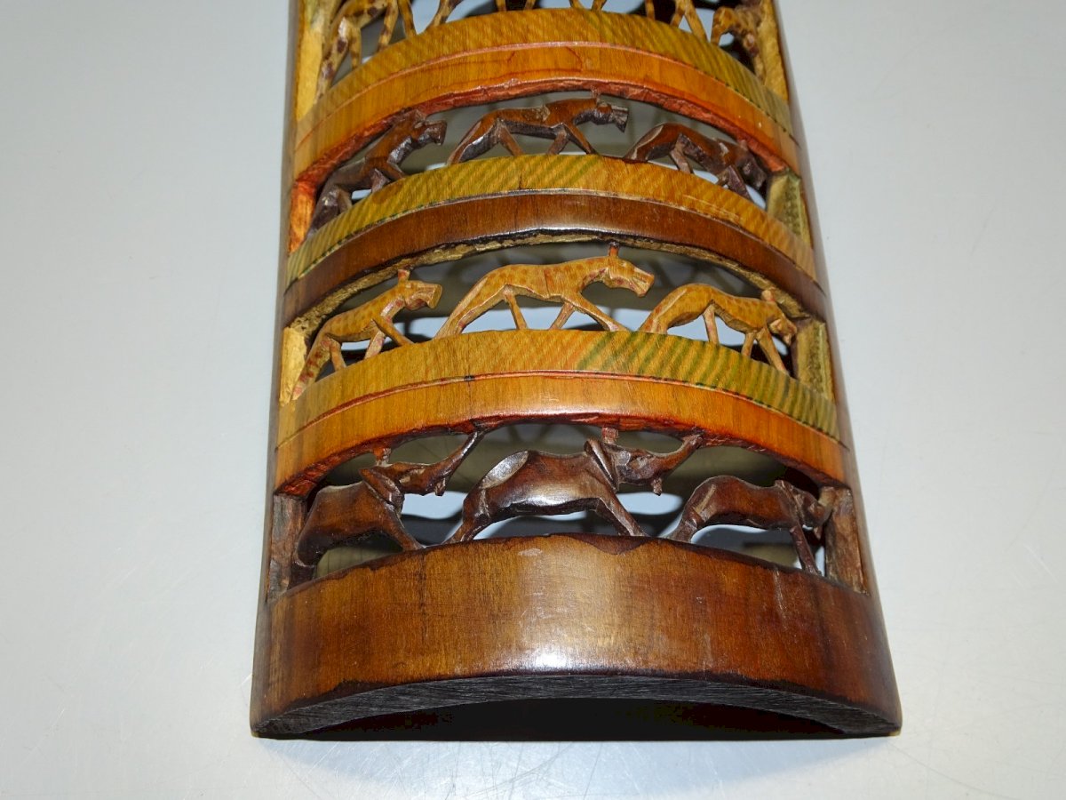 2 LARGE half bamboo sculptures of various African animals and Men - to hang on the wall - (see photos) - in good used condition, attic dust - Ref.: 1V240718/409 - 32 x 14 cm and 29.4 x 12 cm - Weight 0.297 kg. SHIPPING POSSIBLE VIA MONDIAL RELAY or COLISSIMO upon request, VERY GOOD PACKAGING GUARANTEED. PLEASE MAKE SURE TO LOOK AT ALL THE PHOTOS as THEY ARE AN INTEGRAL PART OF THE DESCRIPTION and ALLOW YOU TO SEE the ITEM AS BEST AS POSSIBLE with ITS POTENTIAL SMALL DEFECTS.