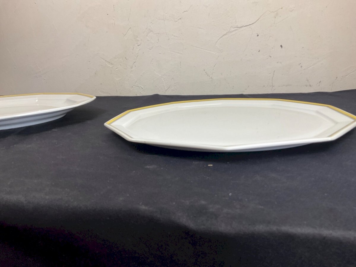 2 large Limoges porcelain dishes COQUET lotus model with cloisonné fillets