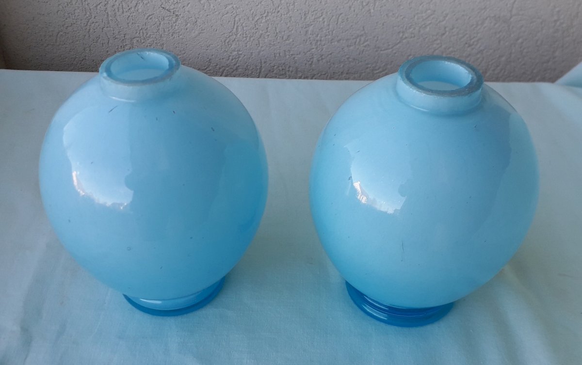 2 blue opaline lamp bases to be electrified.