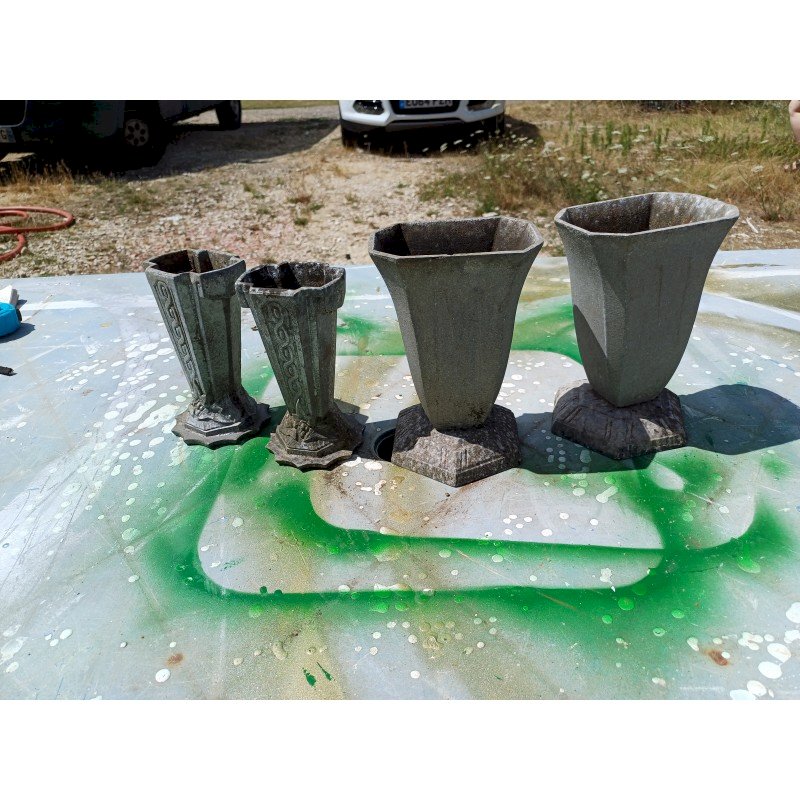 2 Pair of Vases in Aluminum 1900, Height: 20 and 16 cm, Length and Width: 12 cm by 9 cm and 8 cm by 7 cm, Weight: 2.5 Kg, very good condition, Genuine, No Copy.