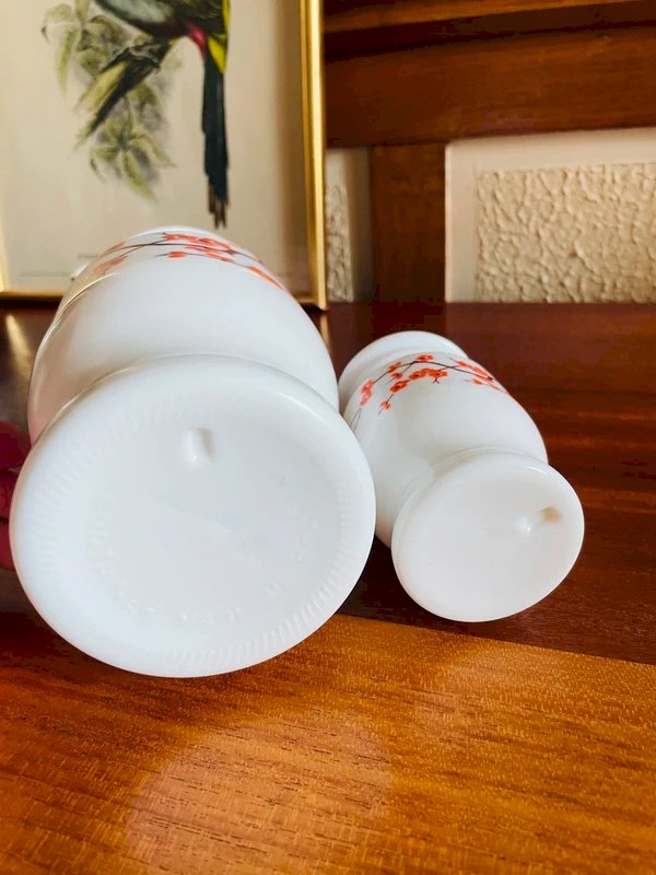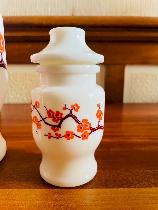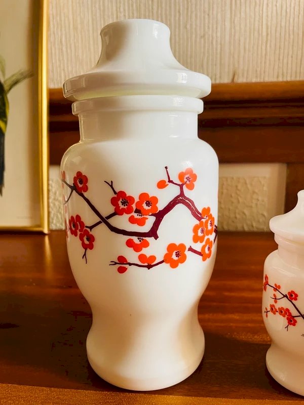 2 vintage apothecary jars White/Orange Glass