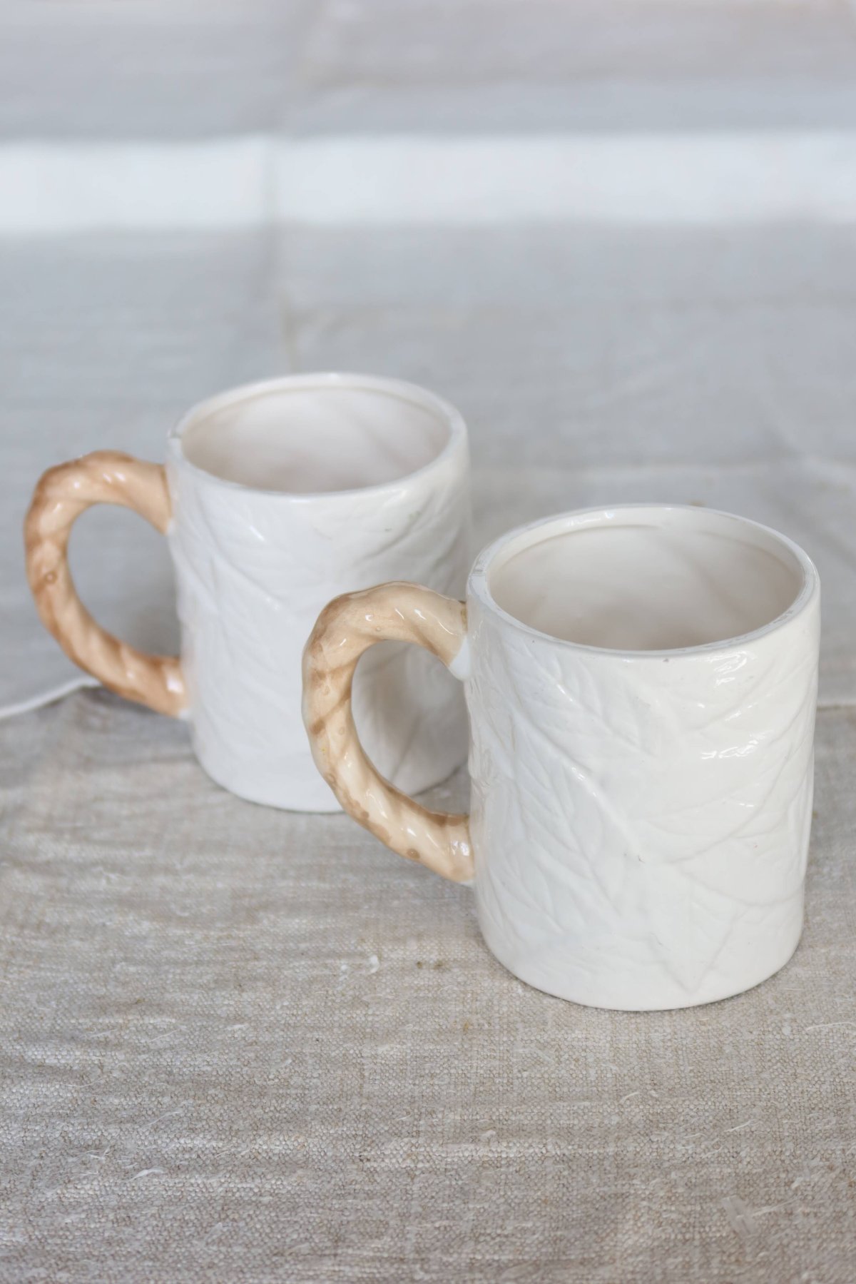 Vintage barbotine cups/mugs - Tulip pattern - Orange and green tones