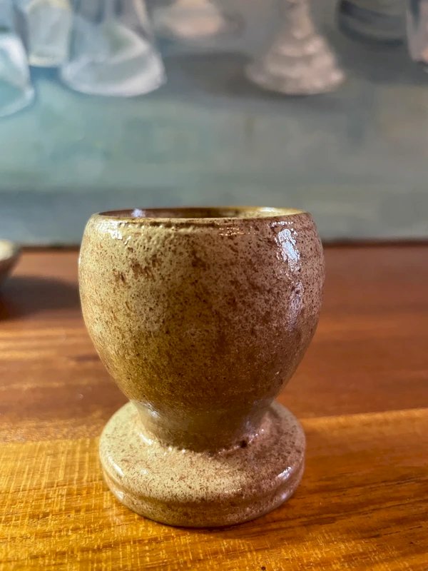 Pretty egg cup in glazed pyrite stoneware, signature to identify vintage
