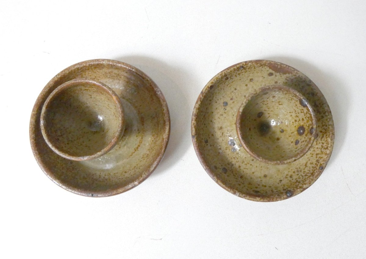 2 egg cups in stoneware, from the 60s-70s. Height: 6 cm. Maximum diameter: 10.5 cm. In very good condition. Condition: Used: Item has been used. Item showing some superficial signs of wear, fully operational and working correctly. It may be a display model or a returned item after a short period of use. Potential imperfections. Color: Beige. Type: Egg cup. Material: Ceramic.