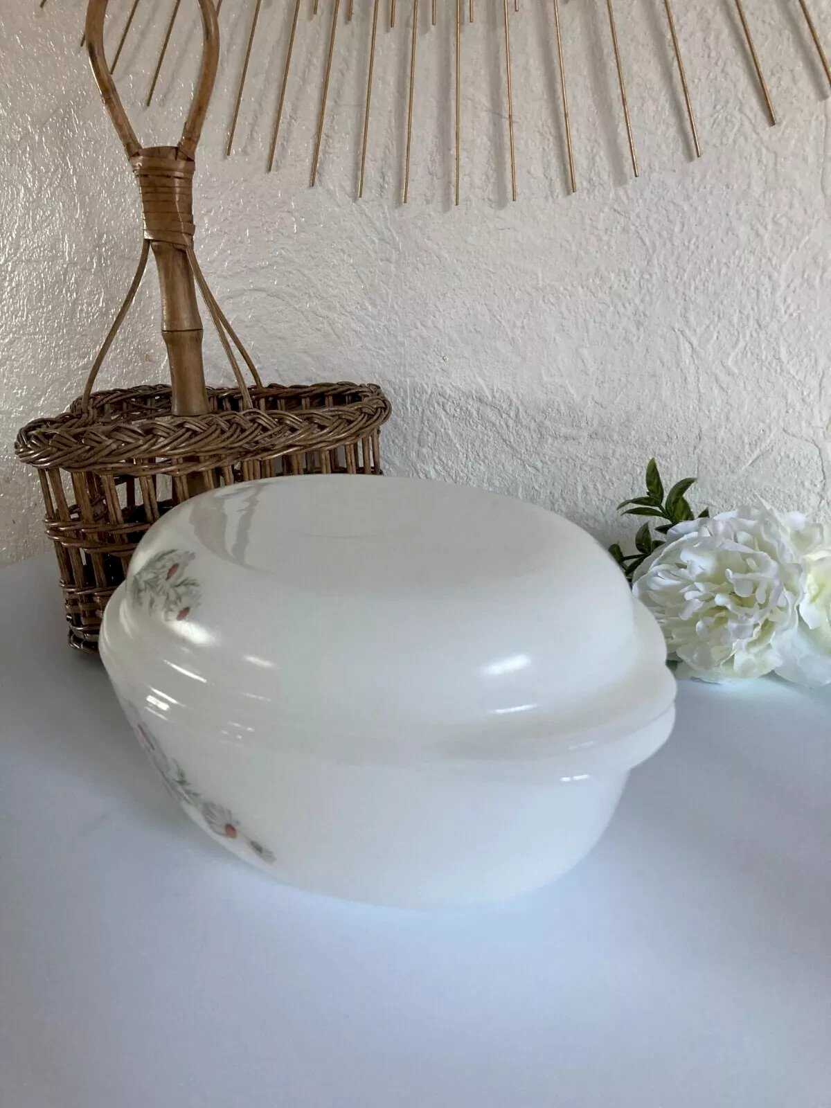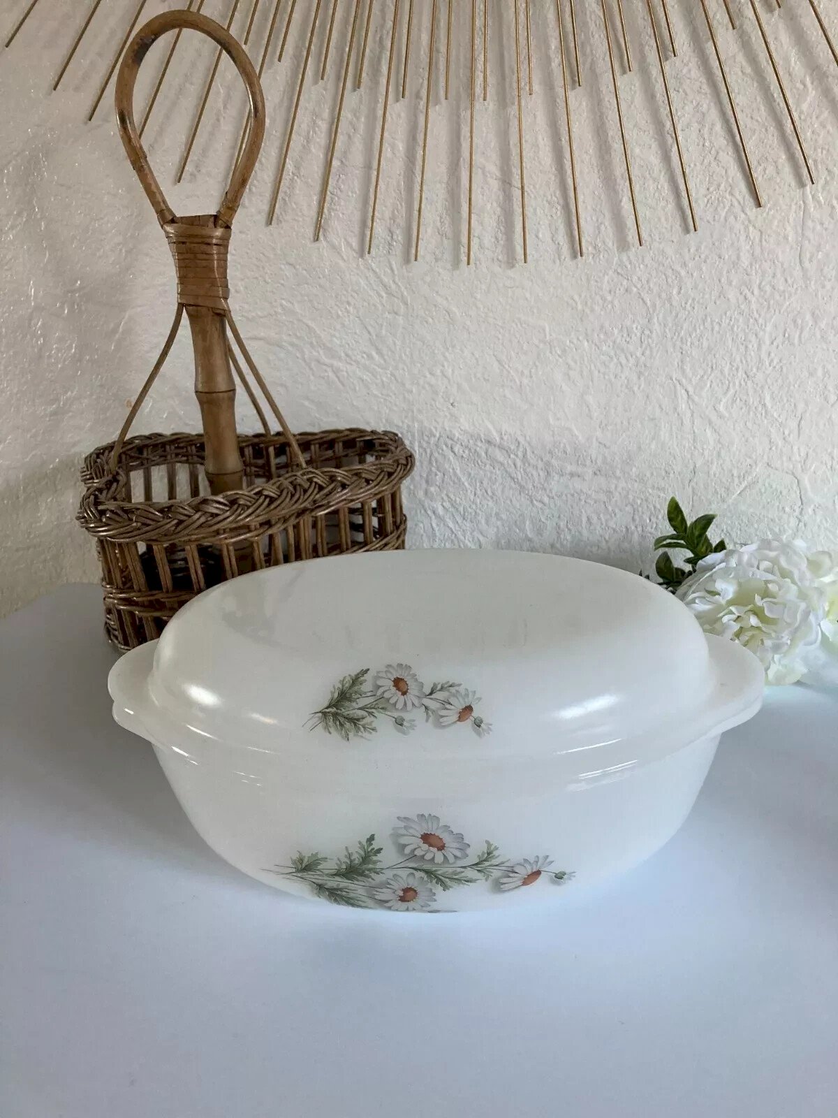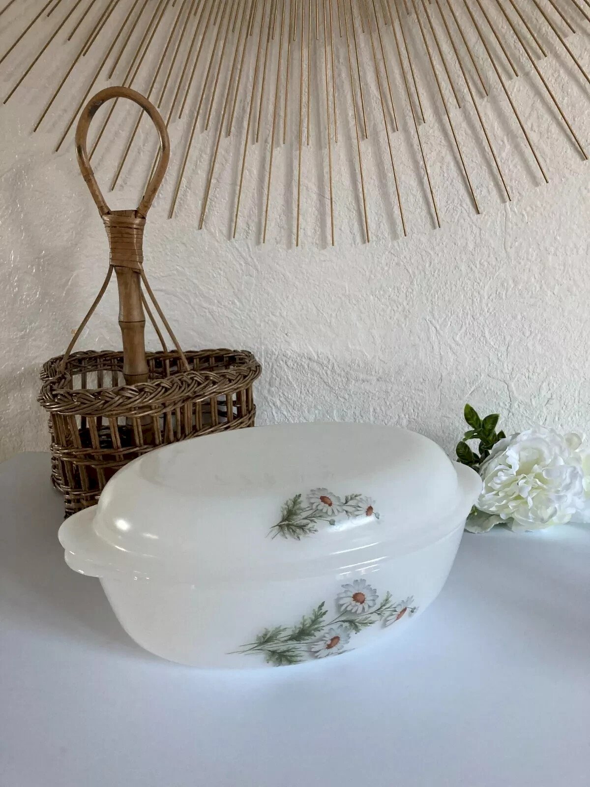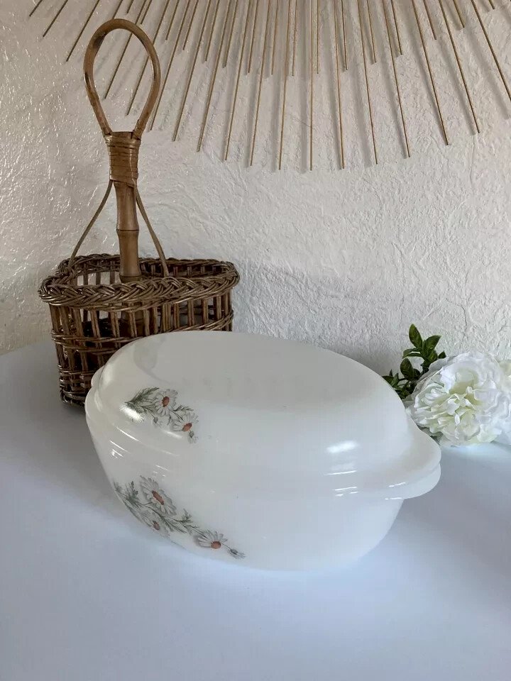 ? Vintage Arcopal France Oval Casserole Dish Flower Daisy Decor ? Height 8 cm without the lid, Length 26 cm, Width 19 cm Condition: Used: Item has been used. Item shows some signs of superficial wear... Used: Item has been used. Item shows some signs of superficial wear, fully operational and functioning correctly. It may be a demonstration model or a returned item after a short period of use. any possible imperfections. Color: White Type: Casserole Brand: Arcopal Compatible stove type: Electric, Gas Internal coating: Opal Glass Length: 26 Width: 19 Country of origin: France