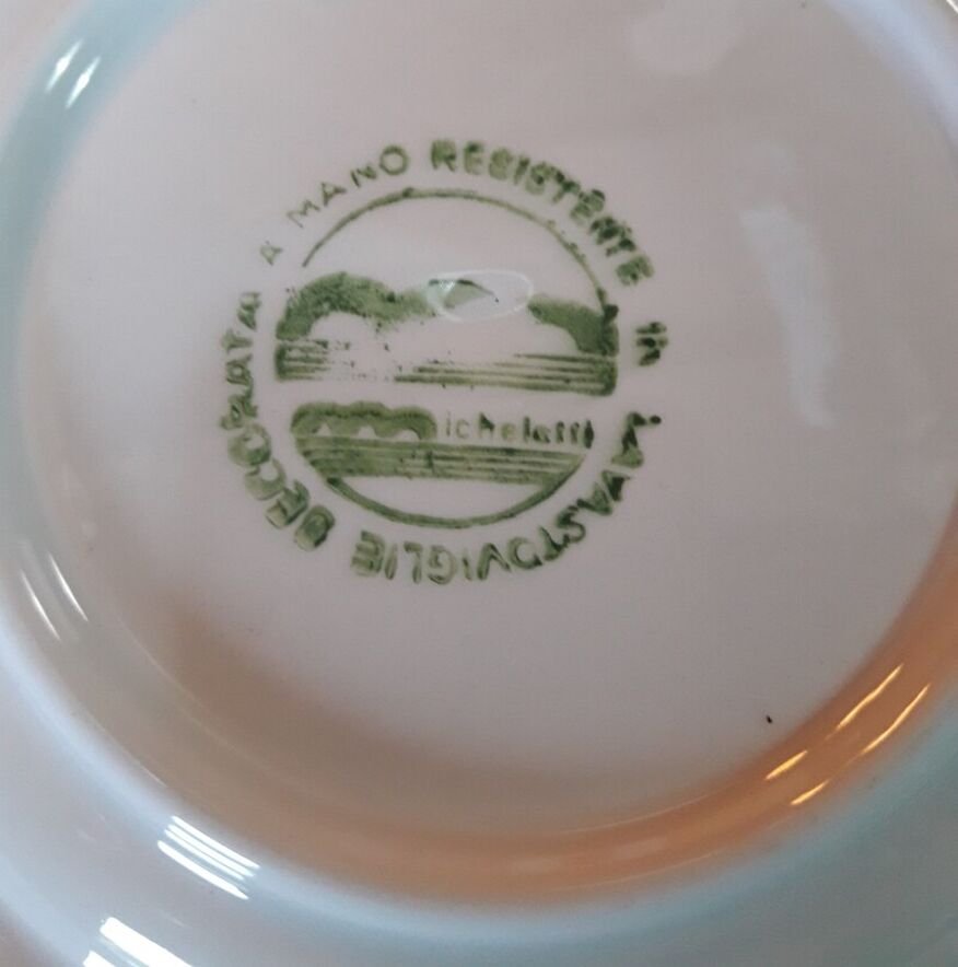 à noter une tache bleue dans le contour blanc sur une, défauts de cuisson, 4 éclats ou ébréchures en dessous,
