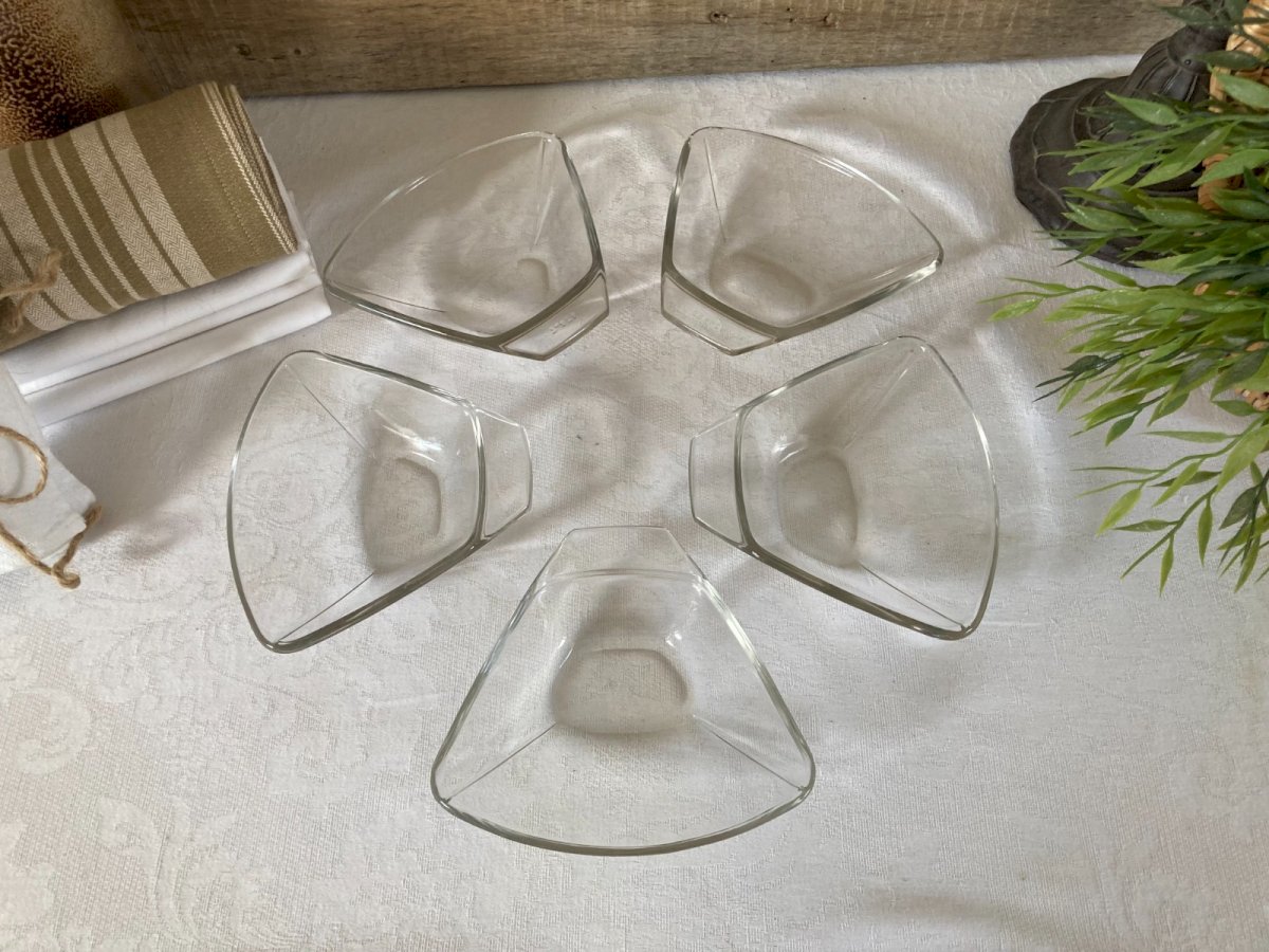 ⚜️ Small Bowls, Set of 5 Individual Pyrex Vintage Glass Plates ⚜️ Total length 13 cm, Height 3 cm Condition: Used: Item that has been used. Item showing some signs of superficial wear... Used: Item that has been used. Item showing some signs of superficial wear, fully operational and functioning correctly. It may be a demonstration model or an item returned to the store after a short period of use. Possible imperfections. Color: Transparent Brand: PYREX Type: Bowls Country of origin: Metropolitan France Material: Glass