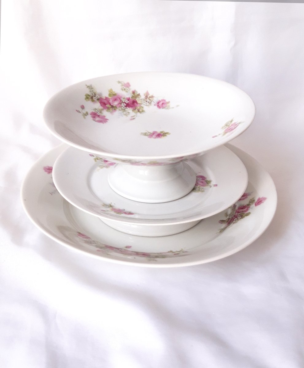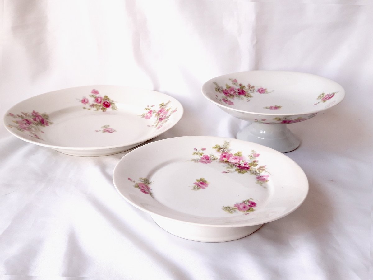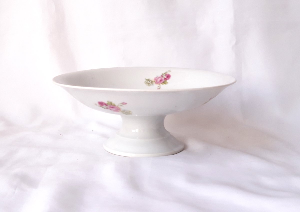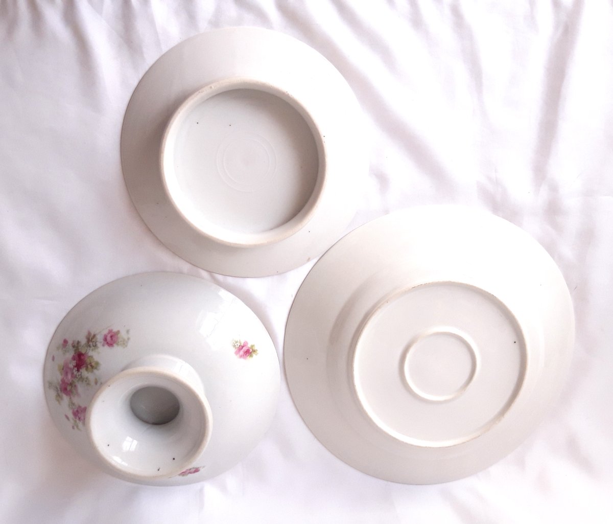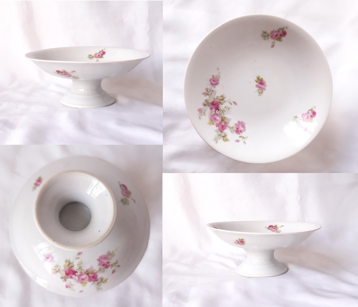 Very old pieces from the late 19th century, handmade. The plate of the compote has the unique feature of being tilted, to highlight what it contains.
