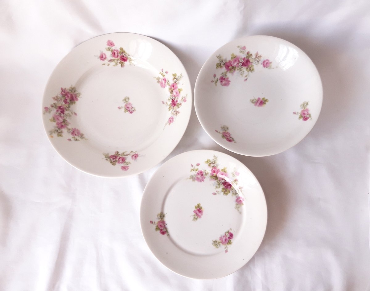 Opaque white porcelain with a decoration of rose bouquets (chromos).