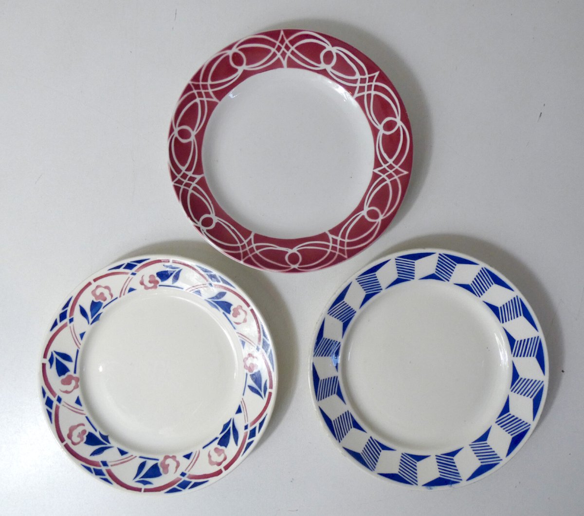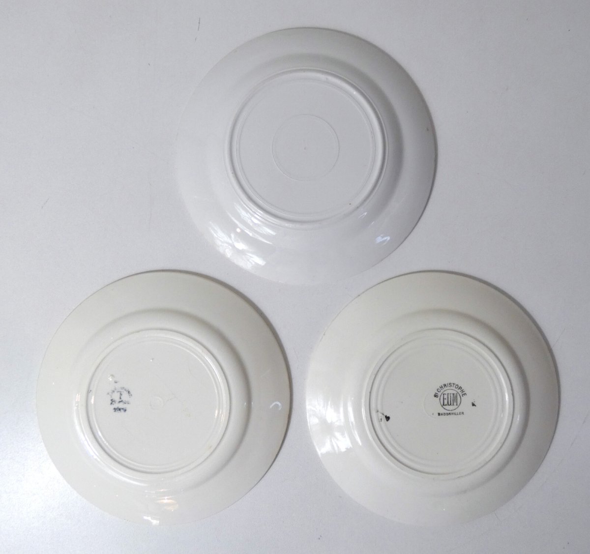 3 vintage mismatched flat plates made of Badonviller faience