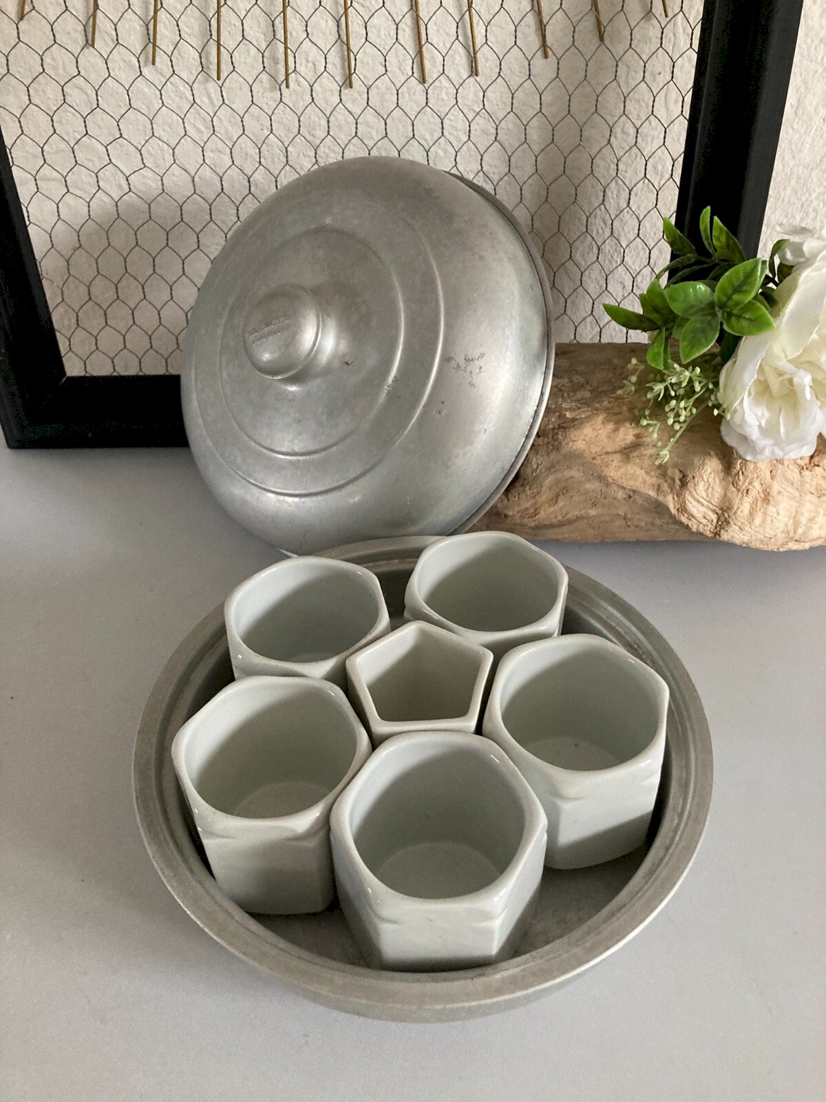 ⚜️ Vintage Yalacta Yogurt Maker in Aluminum with Pots Made in France ⚜️ Height of pots 6.5 cm, Diameter 22 cm Total height 14 cm Condition: Used: Item has been used. Please check the seller's description for more details ... Used: Item has been used. any possible imperfections. Country of origin: France Type: Pot Material: Aluminum