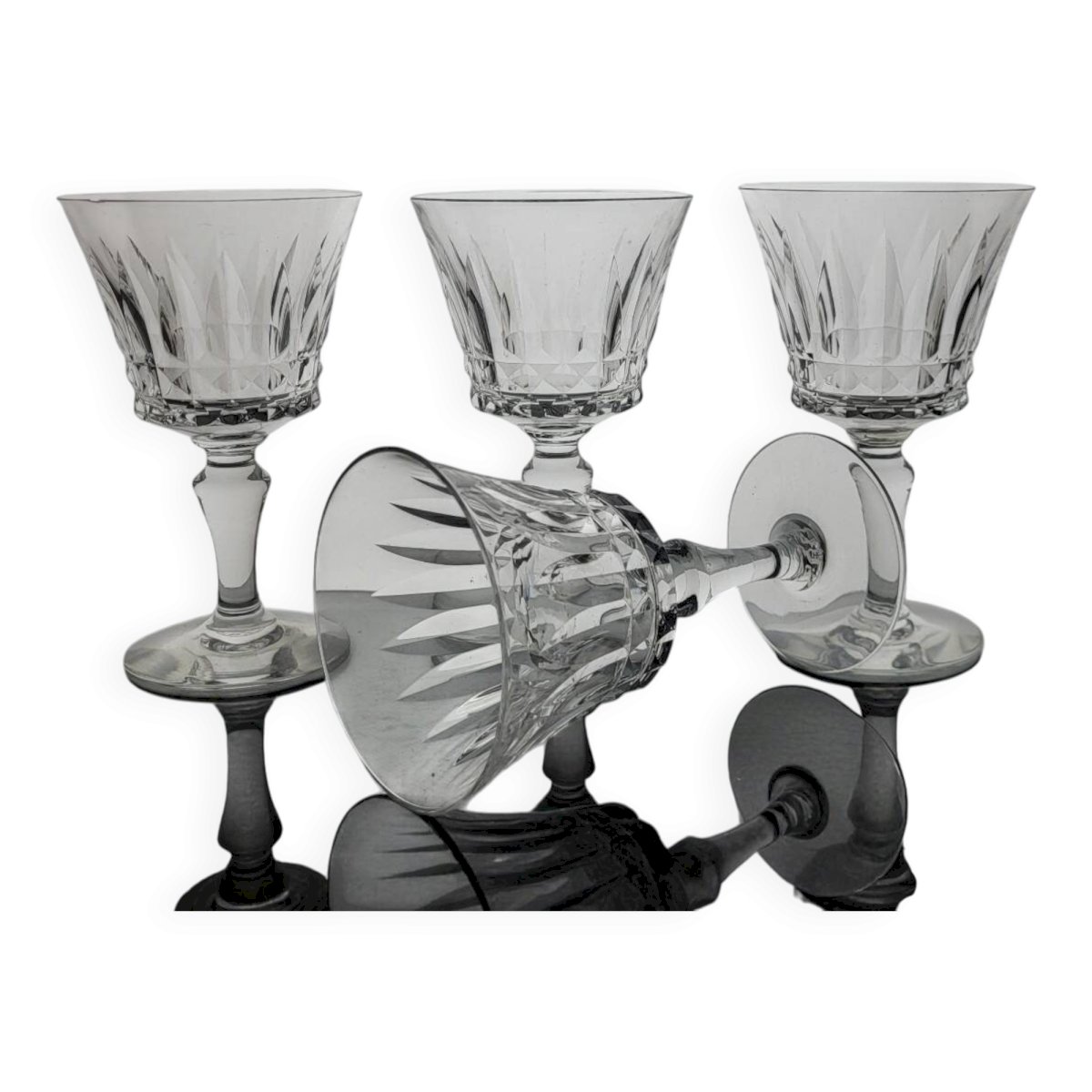 Lot of 5 old glasses, in crystal, flat sides, Duchess of Dino, Baccarat