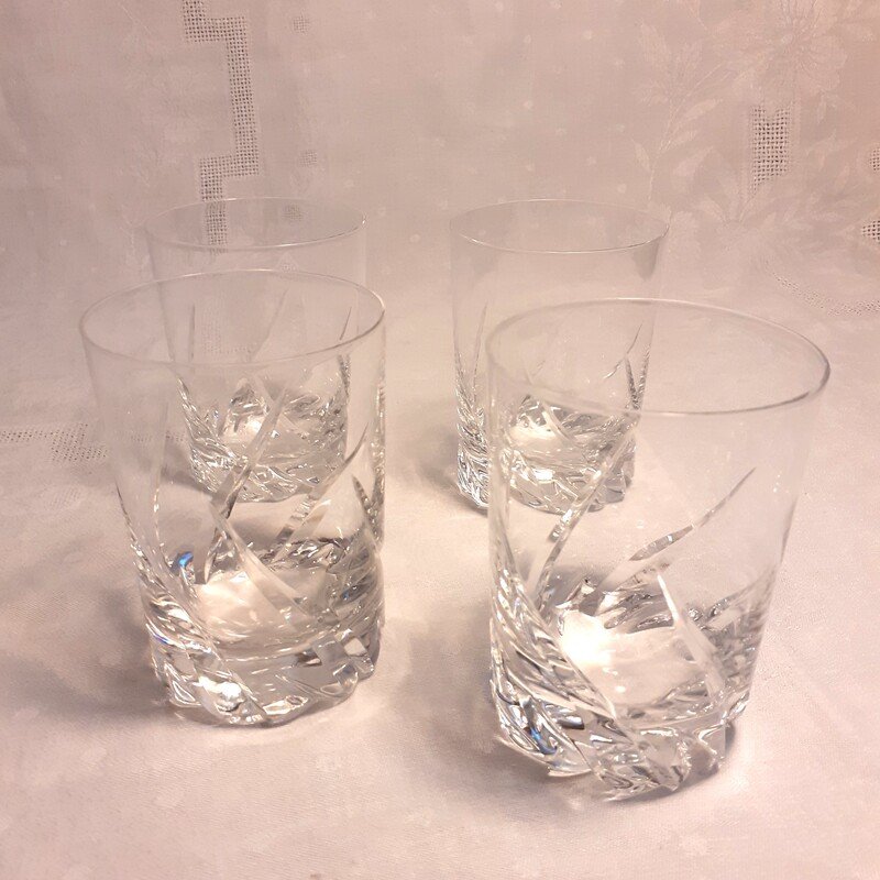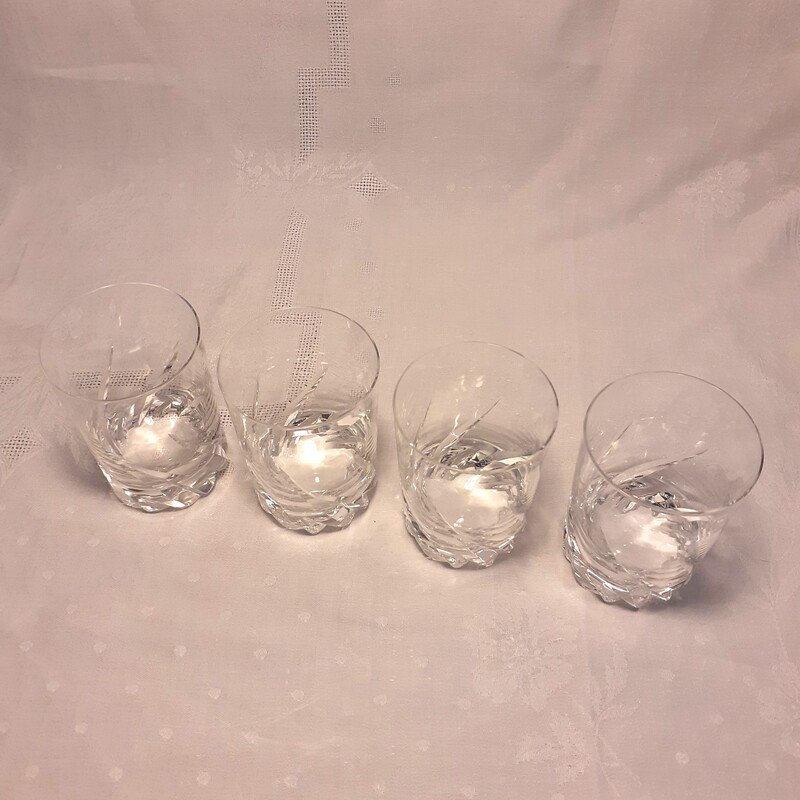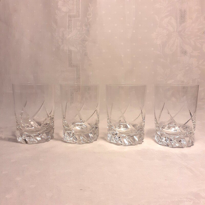 Set of 4 Daum crystal water glasses, Bleneau model, in perfect condition, superb transparency and brilliance of the crystal, no accidents, just tiny traces of rubbing underneath, all engraved Daum. (The water glass is taller than the whiskey glass) Measuring 11cm high, 7.8cm in diameter, one weighs 353g and the other three weigh 328g each. Capacity: 33cl Ref949