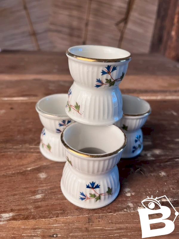 4 devil's egg cups decorated with Barbeaux Porcelain