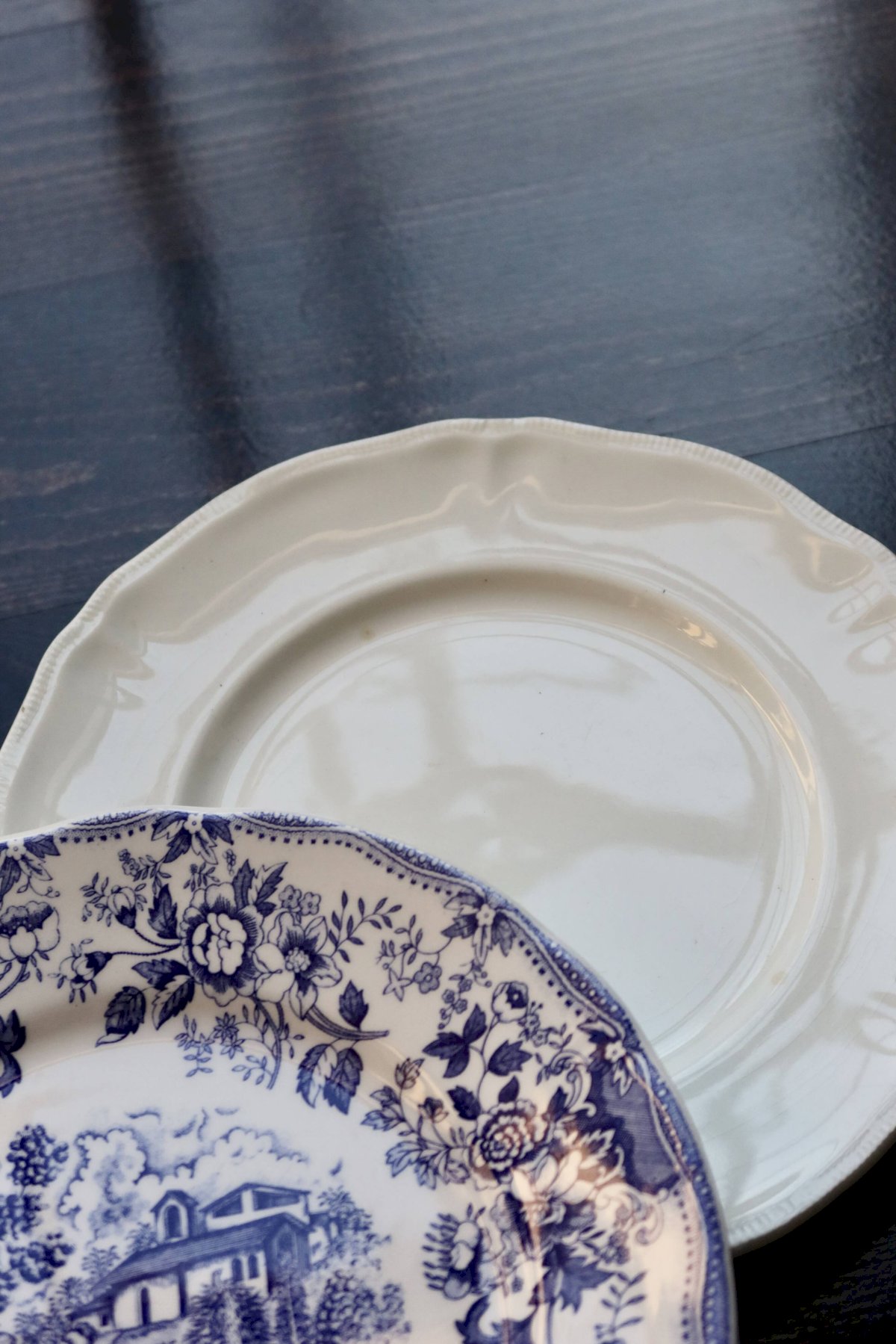 6 mismatched vintage flat plates blue and white porcelain