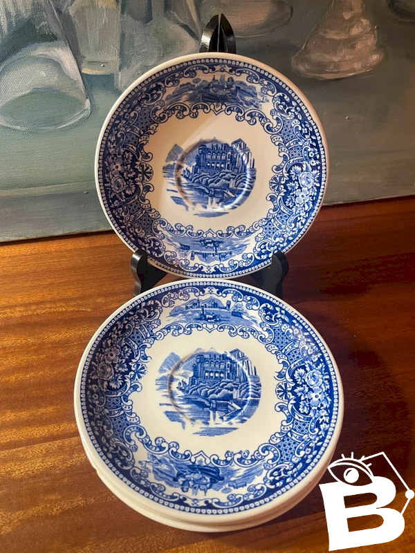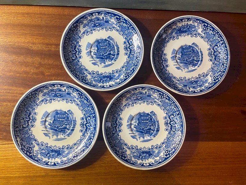 4 saucers Dutch Royal Sphinx Maastricht Cambridge Old England Blue/White Ceramic