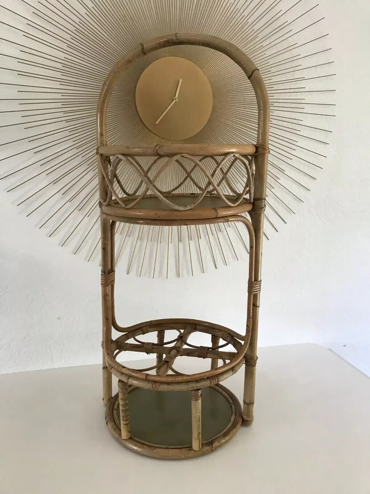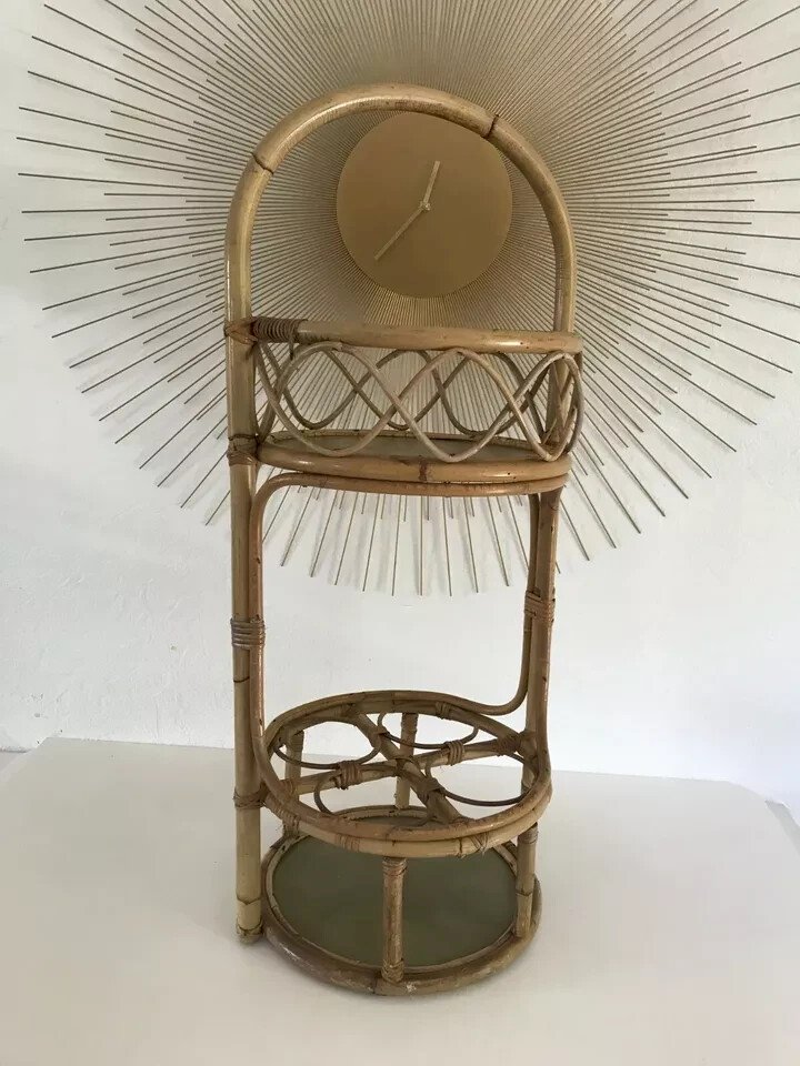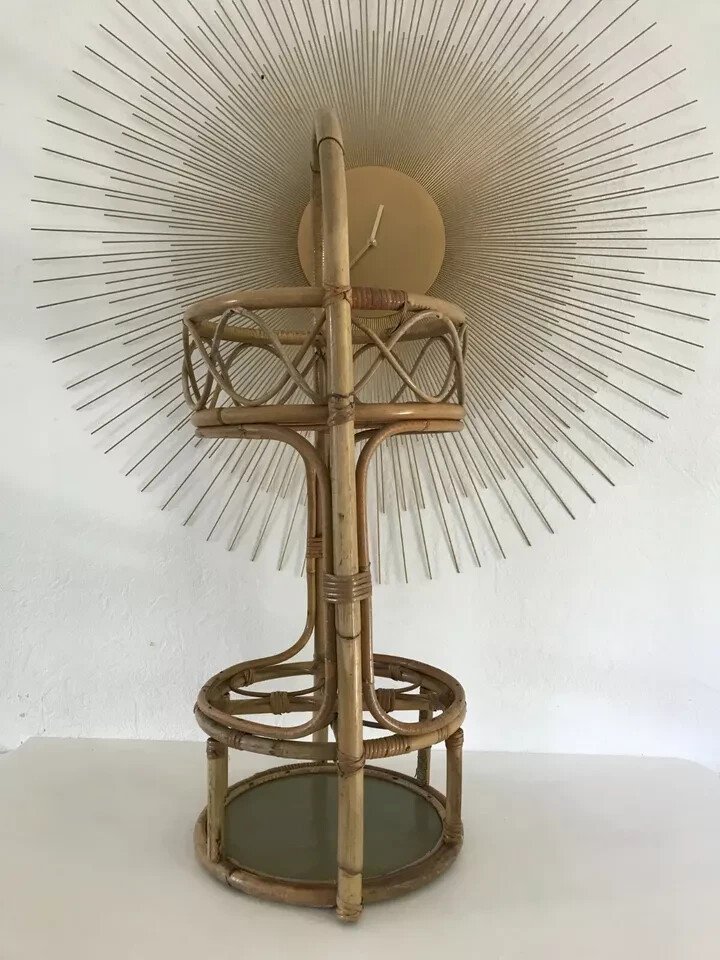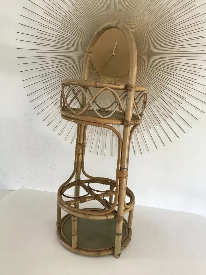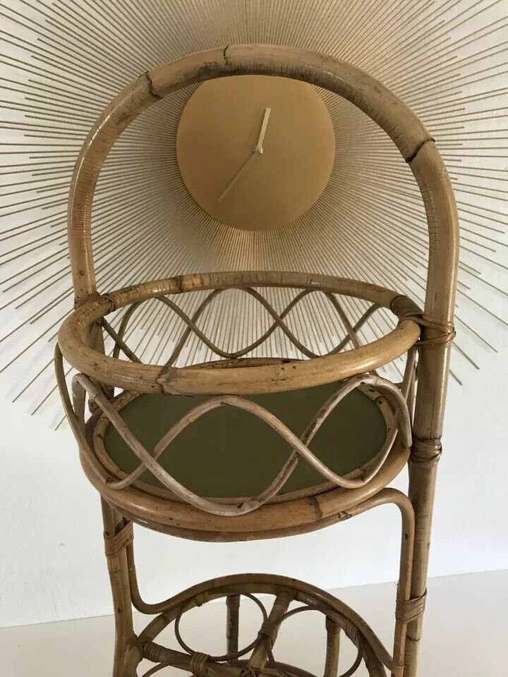 ☺ Vintage Authentic Rattan Wicker Bottle Holder Bar ☺ Height 57 cm without the handle Diameter 30 cm Condition: Used: Item has been used. Item shows some superficial wear marks, ...Used: Item has been used. Item shows some superficial wear marks, fully operational and functioning correctly. It may be a display model or a returned item after a short period of use. any potential imperfections. Type: bottle holder Material: rattan Country of origin: France