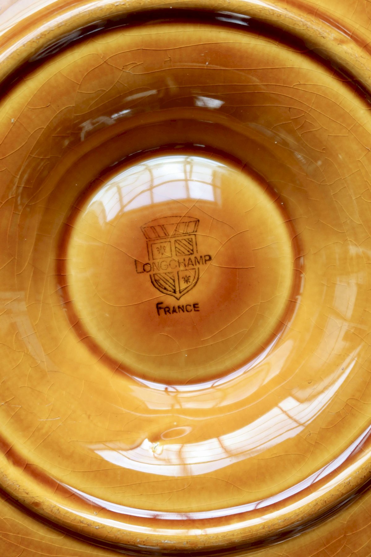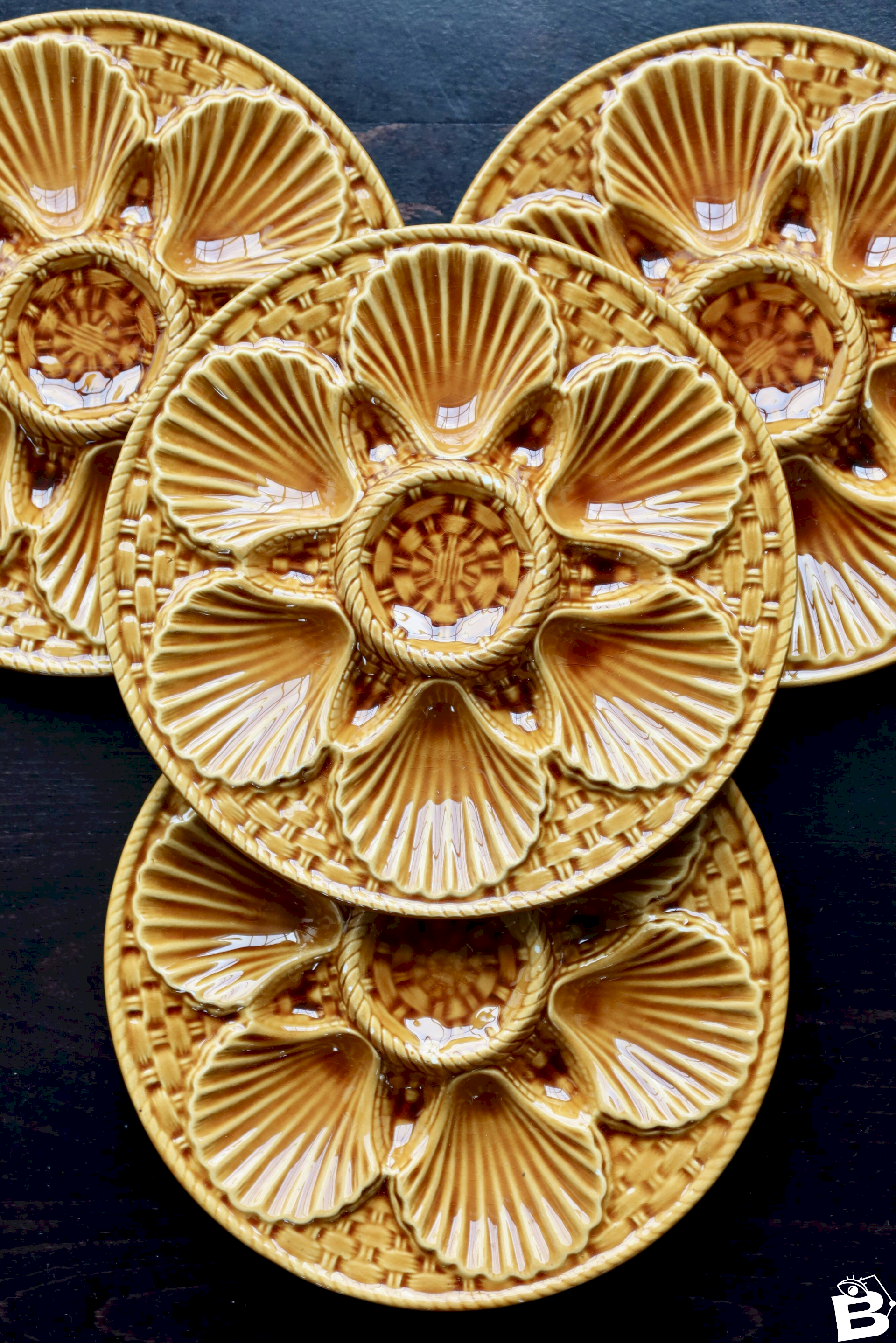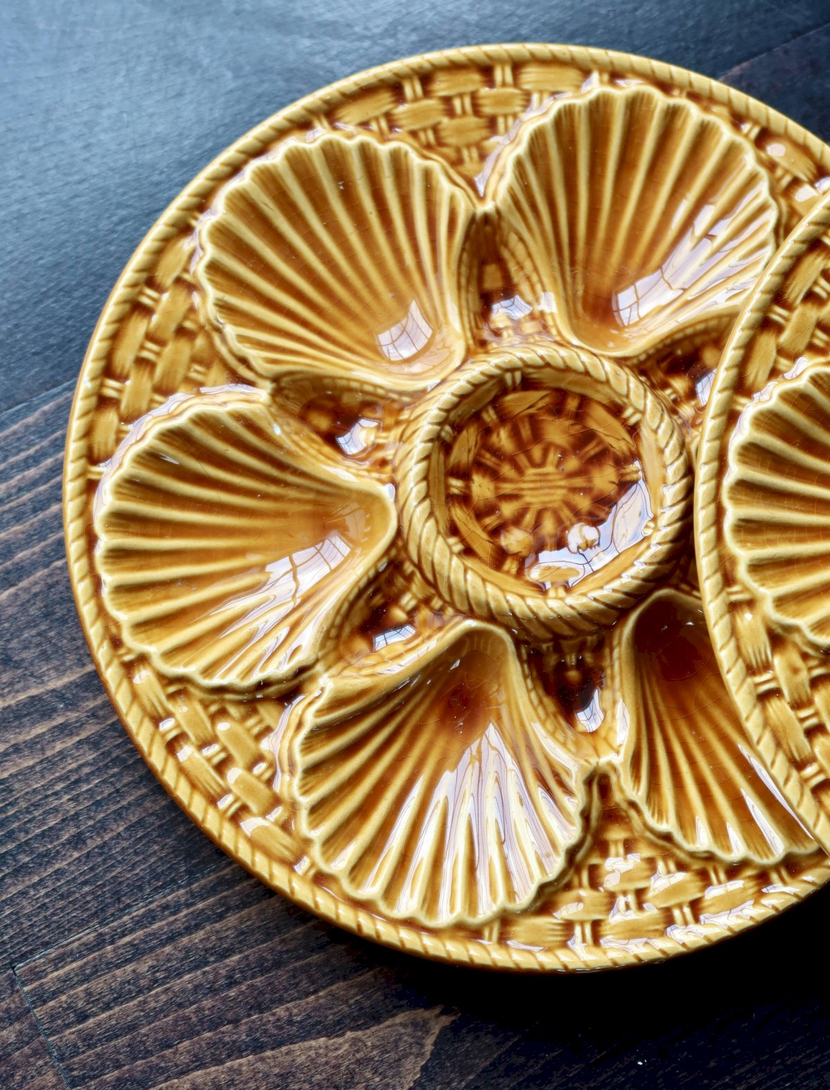 Superb set of 4 Longchamp oyster plates in glazed earthenware, warm ochre tone.