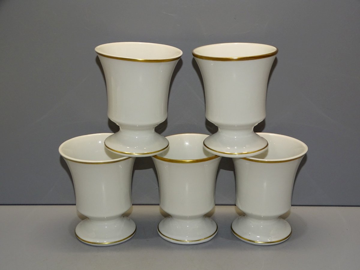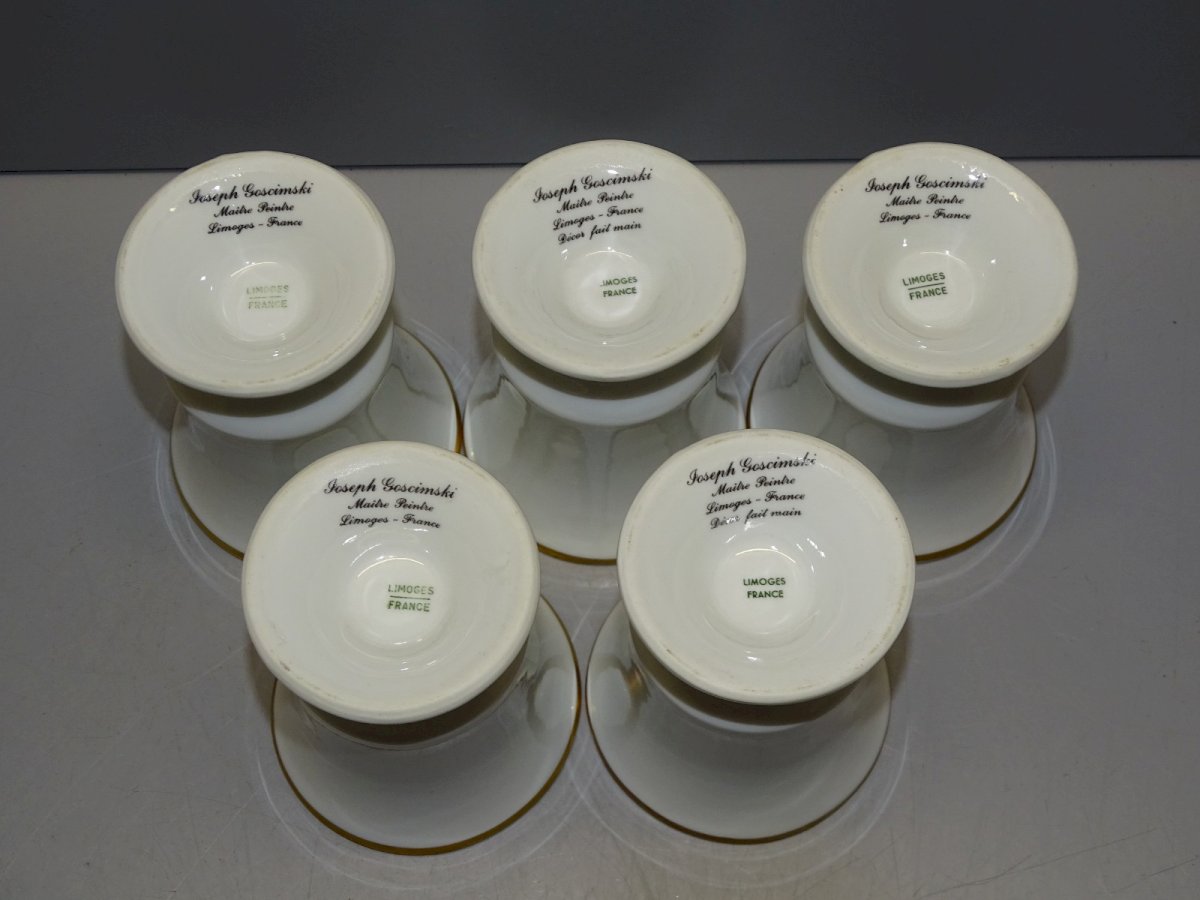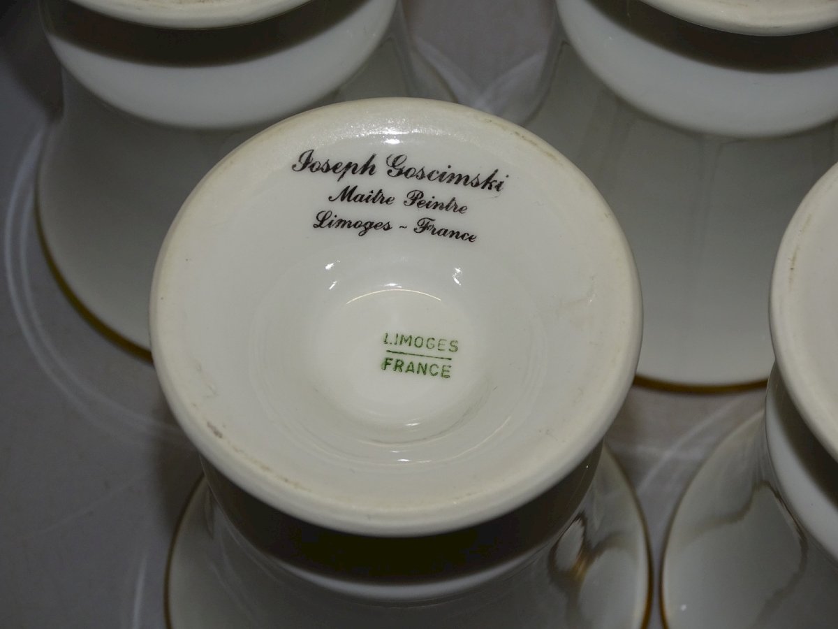 5 Superb mazagrans, Limoges porcelain cups signed by Joseph Goscimski, Limoges painter - beautiful gilded borders with differences in placement (see photos) - finds from attics - in very good used condition - Ref. 42141025/69 - Diameter 7.4 cm - Height 9 cm - Weight 724 g - SHIPPING via Mondial Relay or Colissimo possible upon request - GUARANTEED protective packaging - THANK YOU for LOOKING at ALL the PHOTOS as THEY ARE an INTEGRAL PART of the DESCRIPTION and ALLOW for a BETTER VIEW of the ITEM.