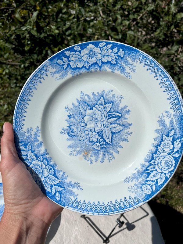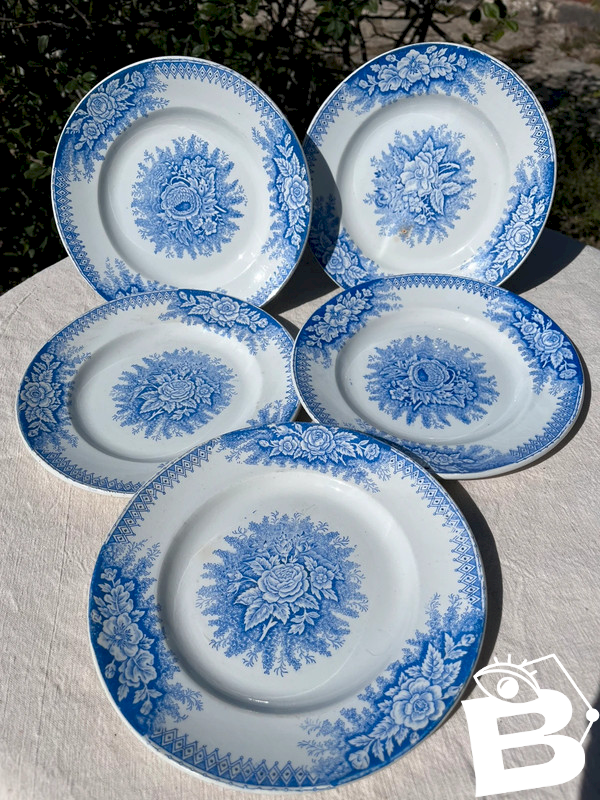 5 flat plates Saint-Amand and Hamage Jardinière model in ironstone from the early 20th century.