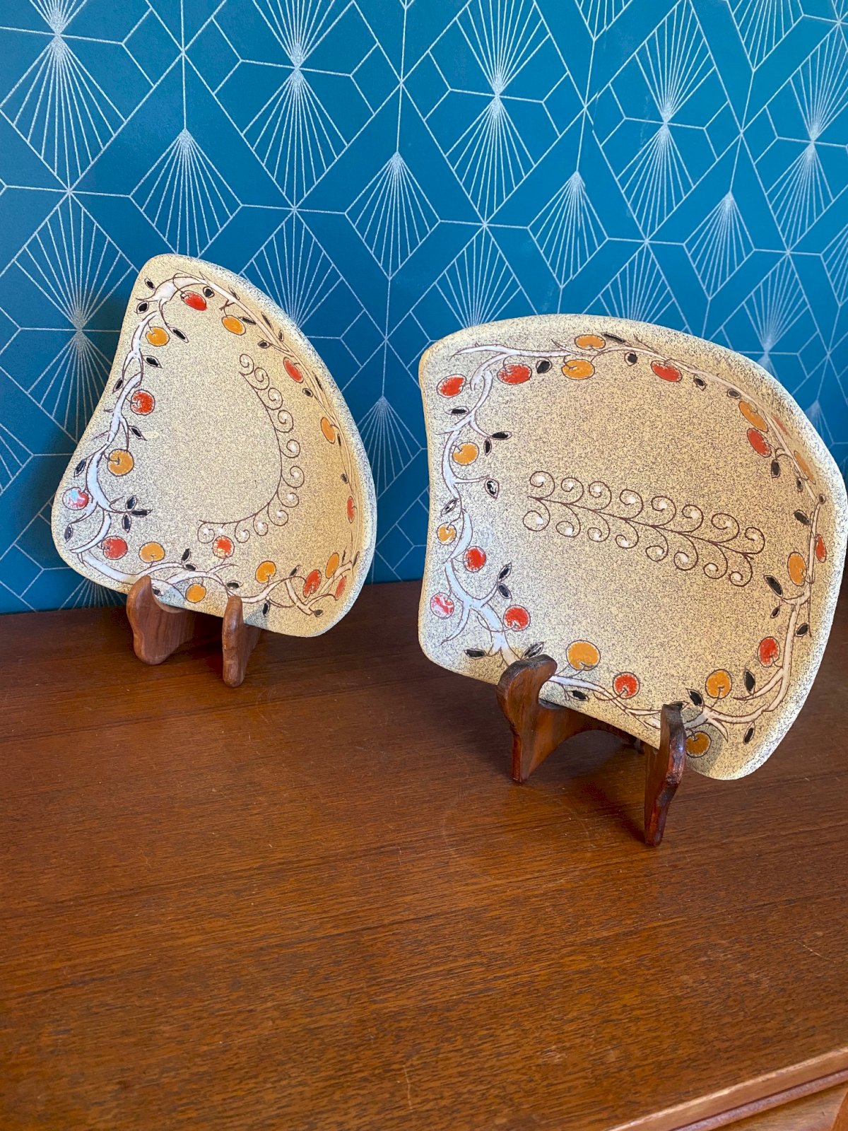 50s ceramic catchall. Fratelli Fanciullacci. The pair. Beige Ceramic/Terracotta Floral,Vegetal