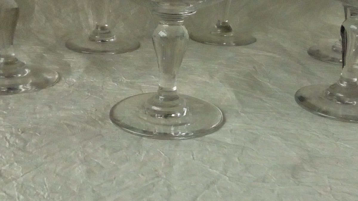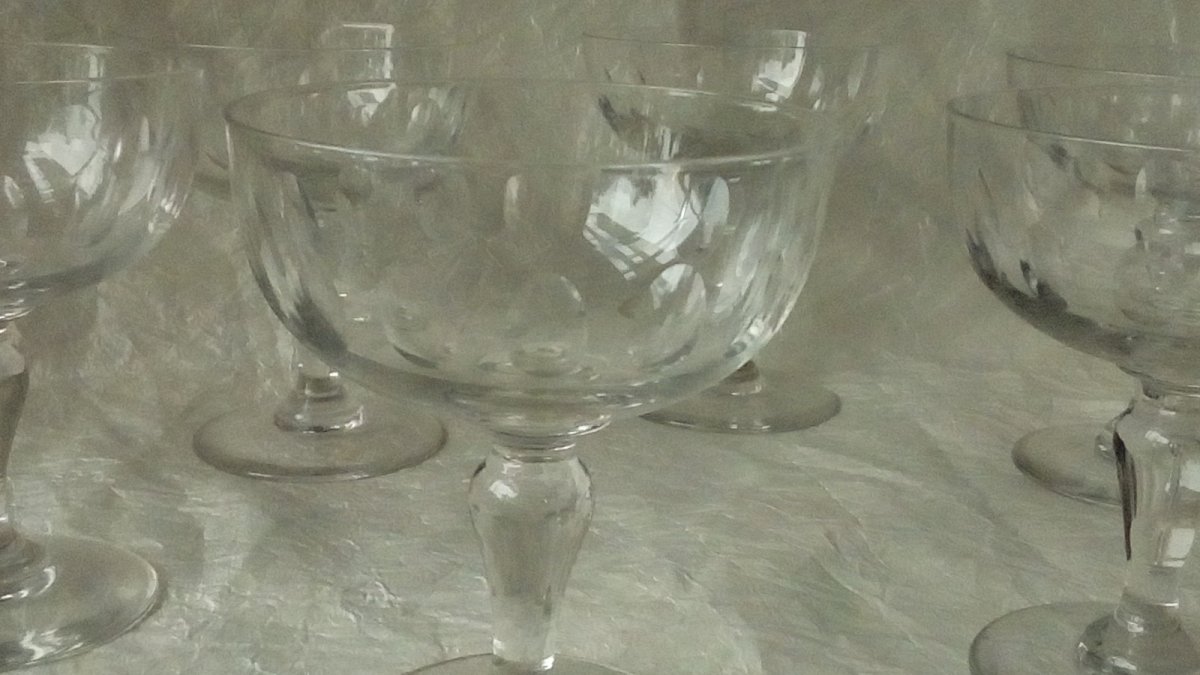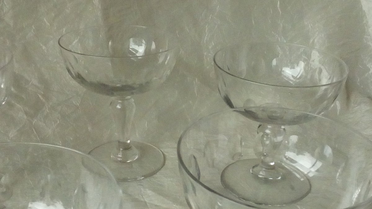 6 ANTIQUE GLASS CHAMPAGNE CUPS FACETED MODEL LATE 19TH CENTURY HEIGHT 11 cm DIAMETER 9 cm IN VERY GOOD CONDITION PRESENCE OF SOME AIR BUBBLES Country of origin: France